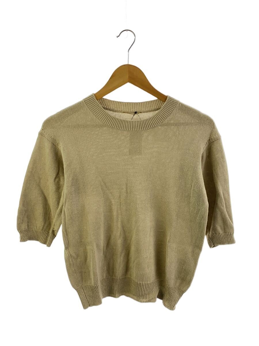 | クルーネック5分袖ニット/首リブ使用感有 |
