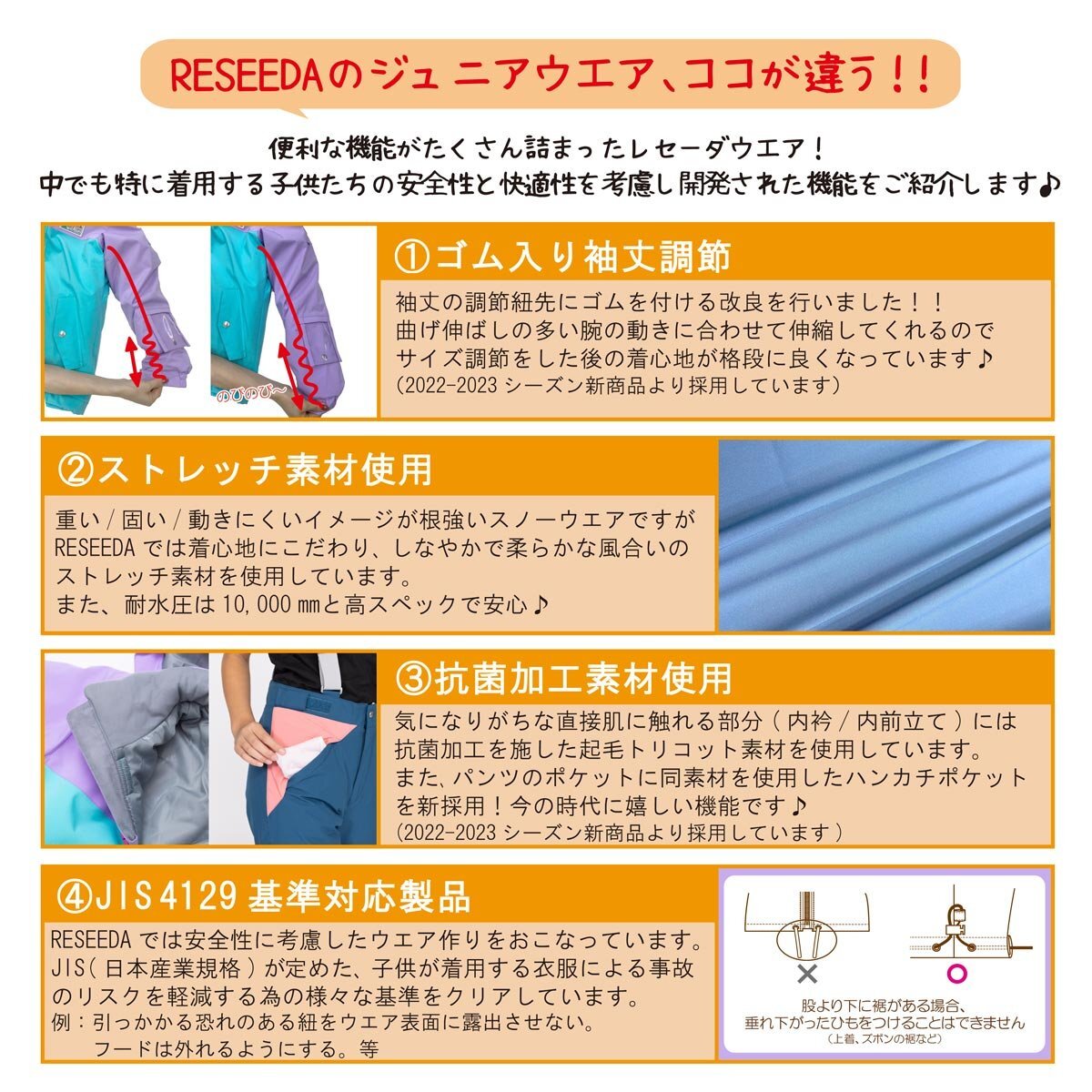 | 詳細 | 大人っぽい羽根柄が鮮やかでゲレンデ映え間違いなし! 高学年のお子様に特におすすめする一着です。 RESEEDAではお子様の安全に考慮し、新JIS規格に対応して作られています。 また、安心便利な機能を標準装備しています。(新JIS規格やRESEEDA仕様に関しては機能説明をご覧ください。) 【商品名】 JUNIOR SUIT 【素材】 PUラミネートストレッチタフタ 表地:ポリエステル100% (ポリウレタンラミネート加工) 裏地:ポリエステル,その他 【耐水圧】 10,000mm 【サイズ(cm)】 130cm:(ジャケット)着丈56/肩幅38/胸囲96/袖丈49(パンツ)ウエスト70/大腿囲54/股下60 140cm:(ジャケット)着丈60/肩幅40/胸囲100/袖丈53(パンツ)ウエスト72/大腿囲56.7/股下65 150cm:(ジャケット)着丈64/肩幅42/胸囲106/袖丈56(パンツ)ウエスト76/大腿囲60/股下70 160cm:(ジャケット)着丈68/肩幅45/胸囲112/袖丈59(パンツ)ウエスト80/大腿囲64/股下75 【カラー】 536F338 / PECxKHK 【特長】 ・撥水加工 ・ストレッチ素材使用:ストレッチ素材を使用しているので柔らかく動きやすい♪ ・脱着フード:フードが着脱できます。フードが引っかかったときには外れるので安全性UP! ・フードアジャスター:頭に合わせて調節する事で、ずり落ちを防ぐので視界が確保され安全性UP! ・笛引き手:フロントファスナー引き手が笛になります!SOSや合図など様々な用途に使えます。 ・抗菌加工内衿:顔に直接触れる内衿部分の起毛トリコットに抗菌加工をしています。衛生的で安心◎ ・新サイズ調節機能:袖丈と着丈、股下丈の調節ができます。22-23シーズンから袖サイズ調節のヒモ先にゴムを付けたことにより動きやすくなりました! ・反射ワッペン:左袖には光を反射するワッペン付きです。暗くなっても安全性UP! ・左袖パスケース:リフト券をそのまま入れられるパスケースポケットを装備!使わないときは袖内側に収納できるもうれしいポイント♪ ・グローブとめ用ループ:両袖口部分にループを装備!グローブを引っ掛けておけば落とさず安心◎ ・可動式サスペンダー:サスペンダーの長さが調節可能! ・ウエストアジャスタ-:両脇のタブでウエスト回りを縮めることができます。 ・ノンシームヒップ:お尻部分に縫い目が無いのでお尻をついても濡れにくい! ・抗菌ハンカチポケット:パンツ右脇のポケットには抗菌加工を施した素材を使用しています。衛生的で安心◎ ・足口スパッツ:足口にはインナースパッツを装備! 雪の侵入を防ぐので快適に着用できます。 ・おさがりネームタグ:ジャケットとパンツの左脇内側部分には便利な記名スペース付き! 二名分の記名スペースがあるので便利! ・エッヂガード:擦り切れやすい裾部分の生地を二重にしています。 ・新JIS基準対応:安全性に考慮したウエアの開発に努めています。 |
