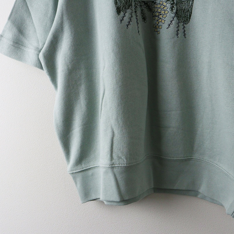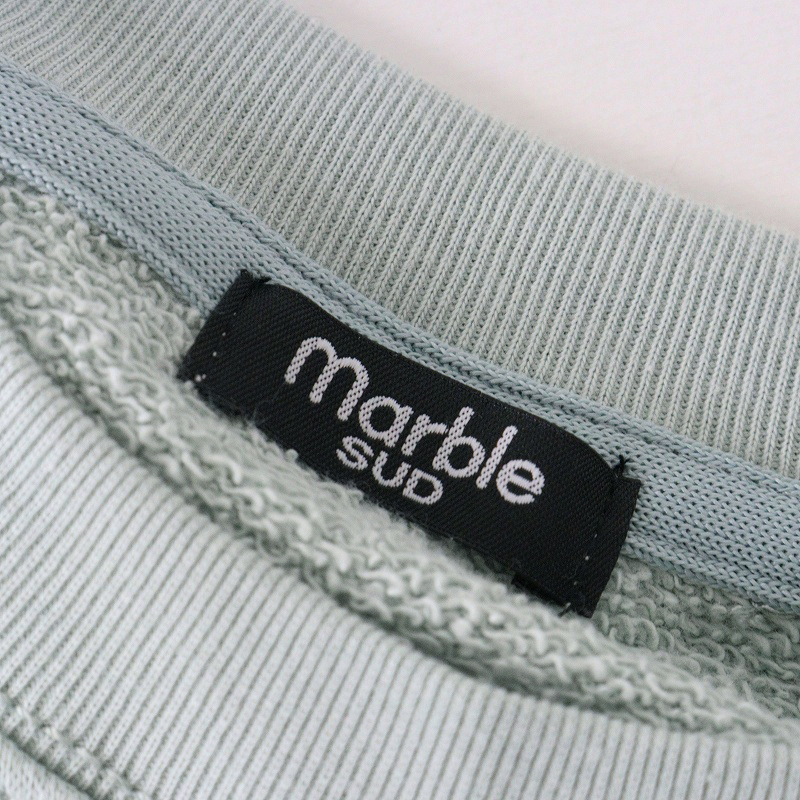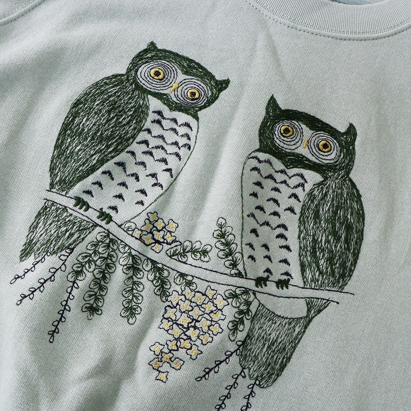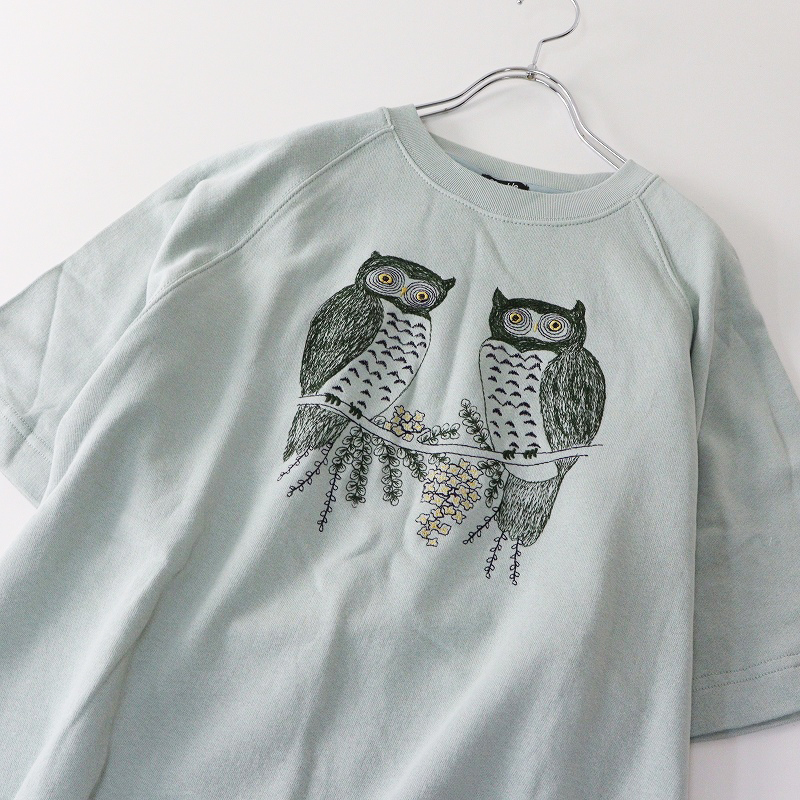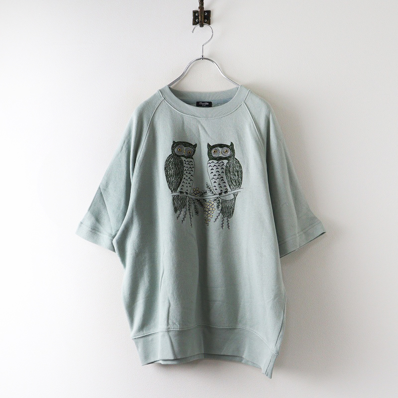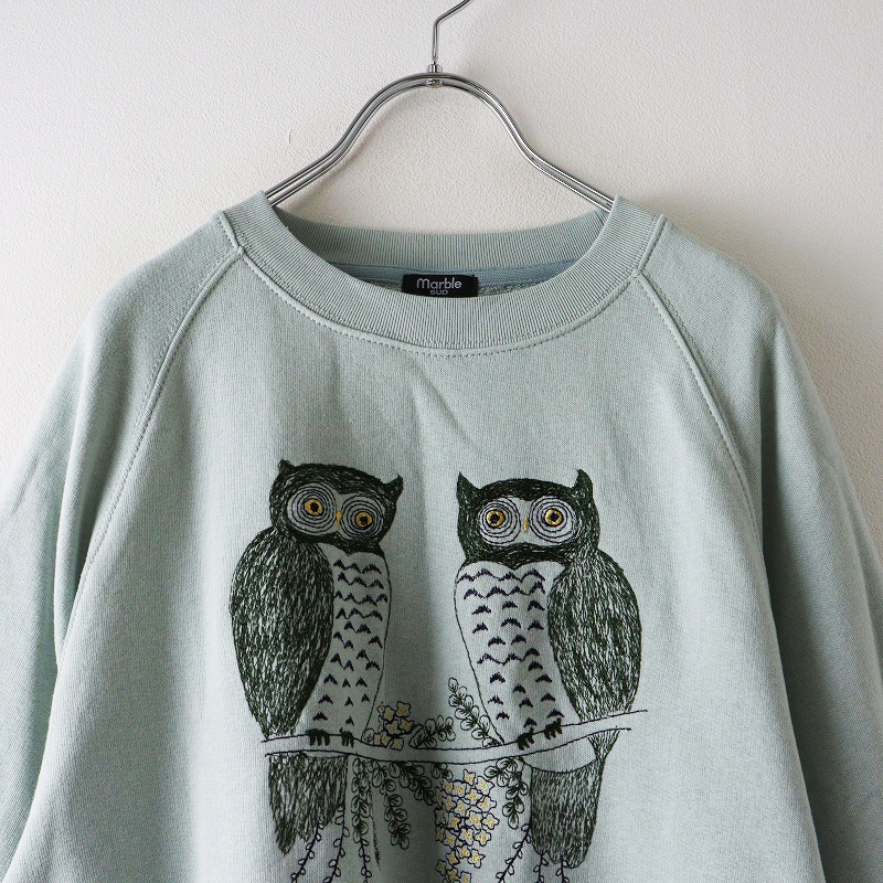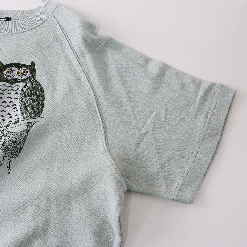 美品 マーブルシュッド marble SUD EMB フクロウ 裏毛 ラグランスリーブカットソー グリーングレー系┃薄手スウェット【2400014635812】