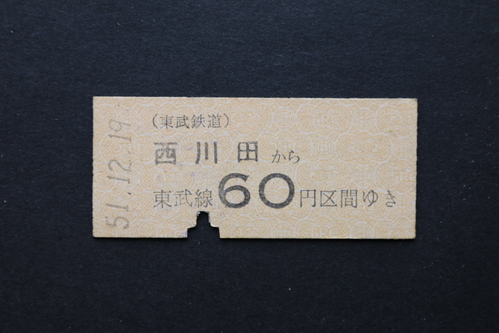 東武鉄道 乗車券 西川田から 60円区間ゆき