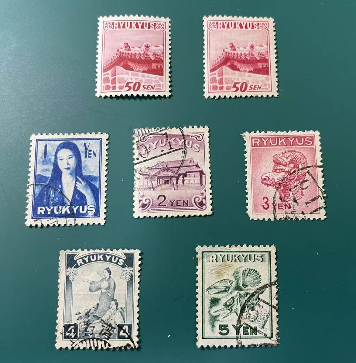琉球切手 第2次普通 未使用と使用済み7枚 ほぼ美品 S390 | |