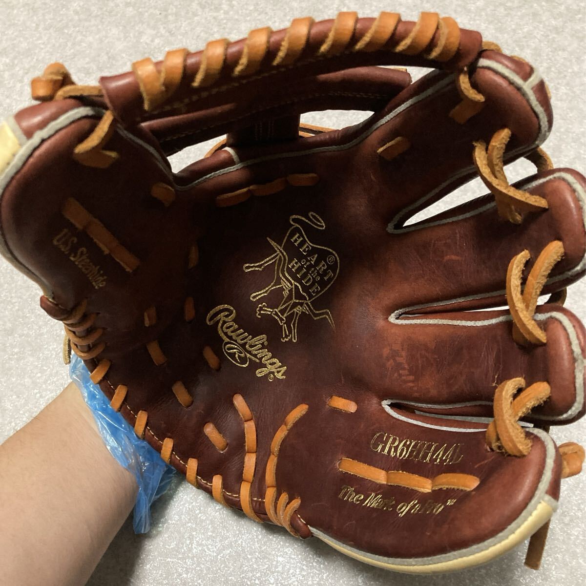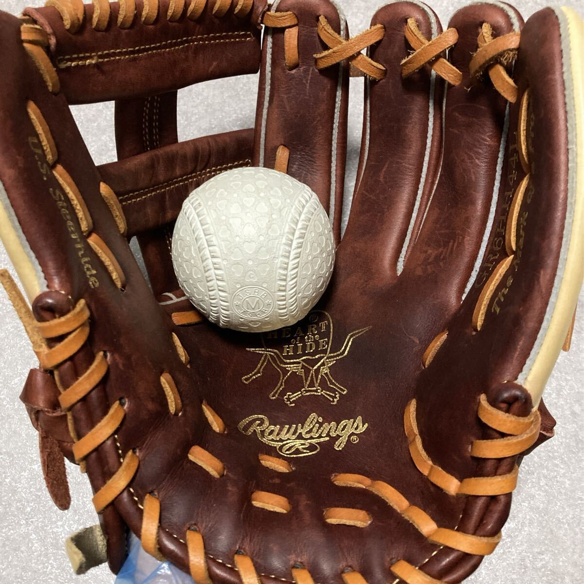 ローリングスグラブ伝統の皮革。厚くて丈夫な皮革の中でも、厳選したステアハイド(生後3〜6ヶ月に去勢された成牛の革)を採用。高い耐久性と独自の重厚な風合いで、メジャーリーガーをはじめ多くのプレイヤーから支持されています。