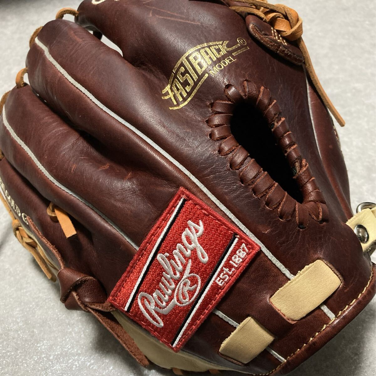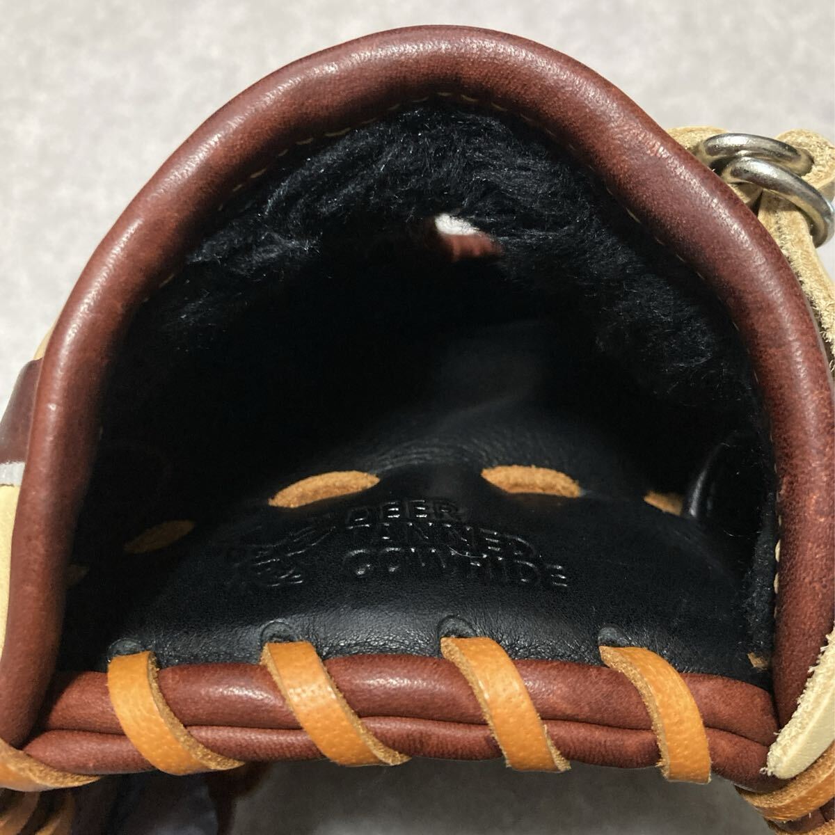 譲渡品の中古グラブで繊細なカラーですので、スレキズ等ございますが、こういった革質です。