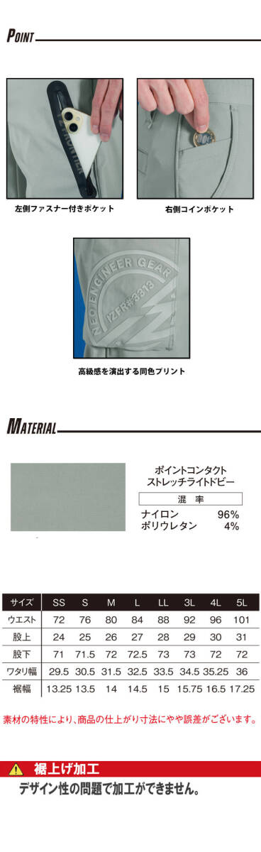 作業服 春夏 アイズフロンティア 接触冷感 スポーティーライトストレッチジョガーパンツ 3313 LLサイズ 46バニラアース