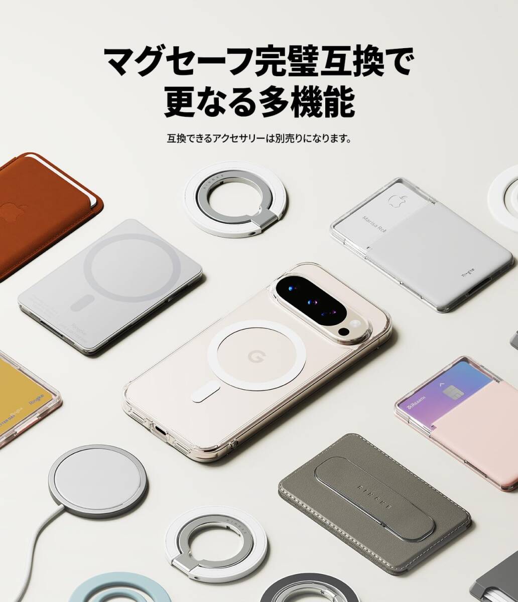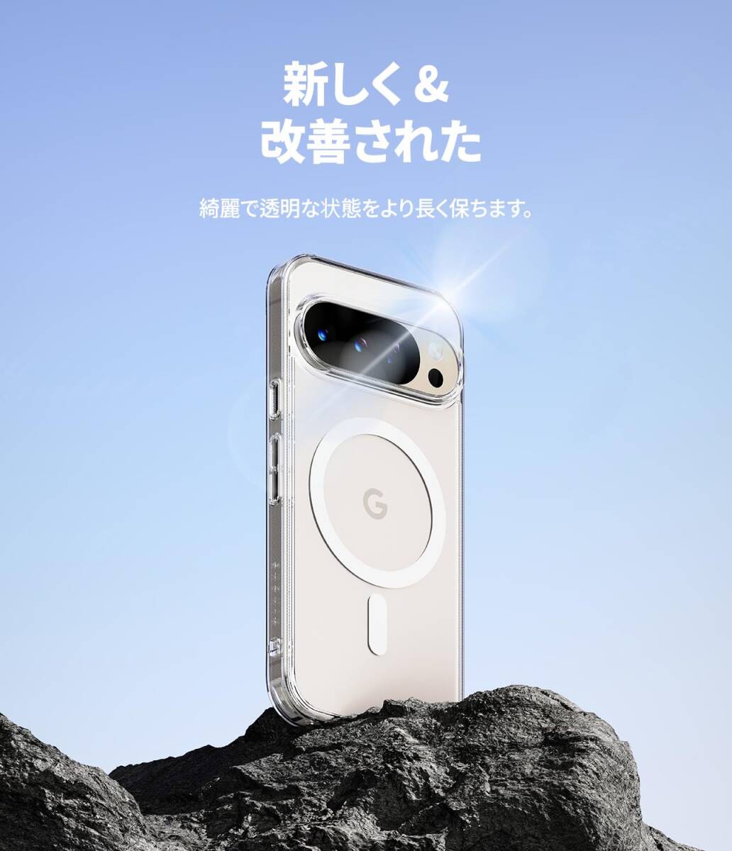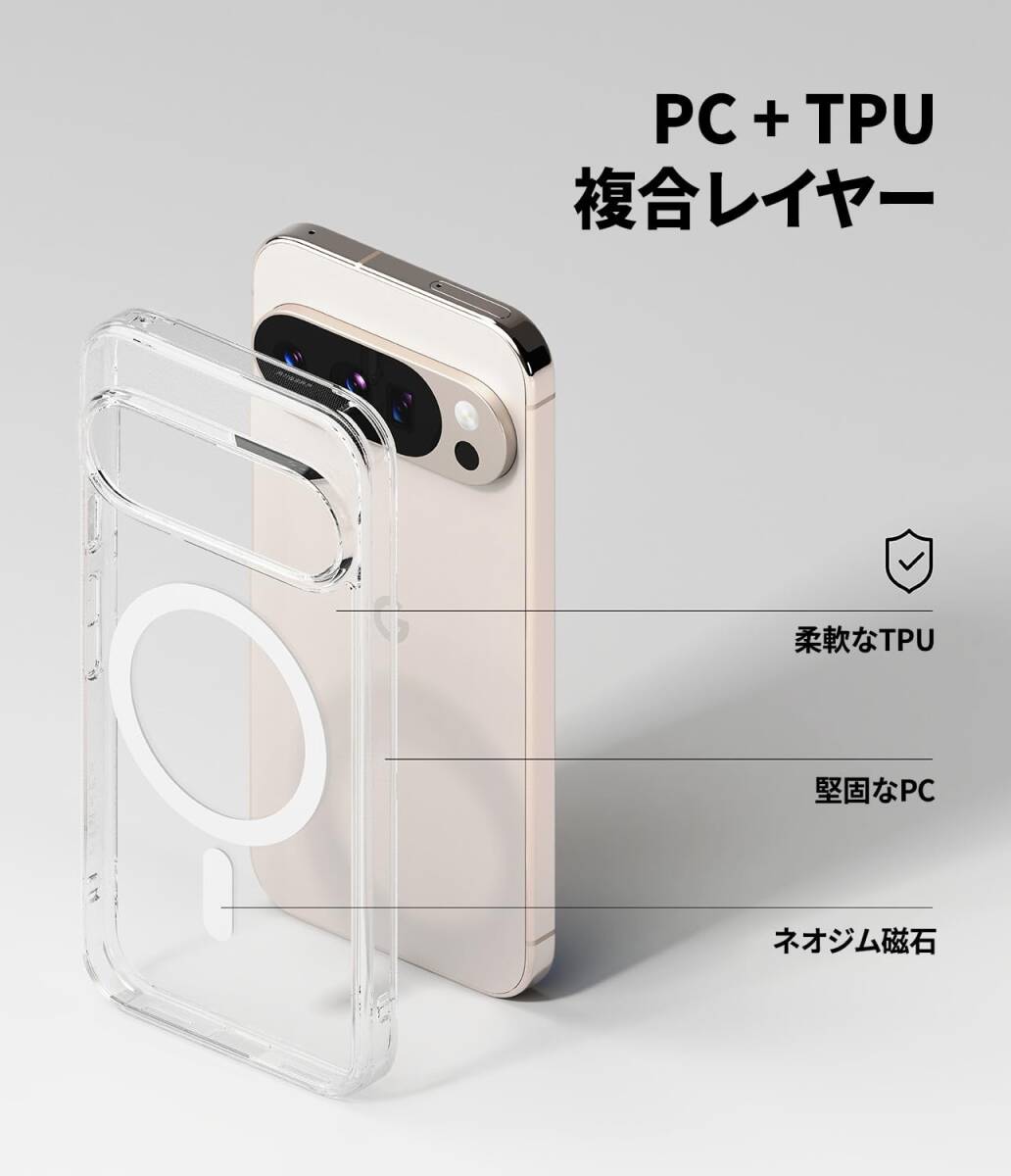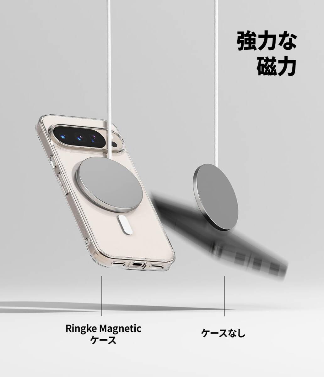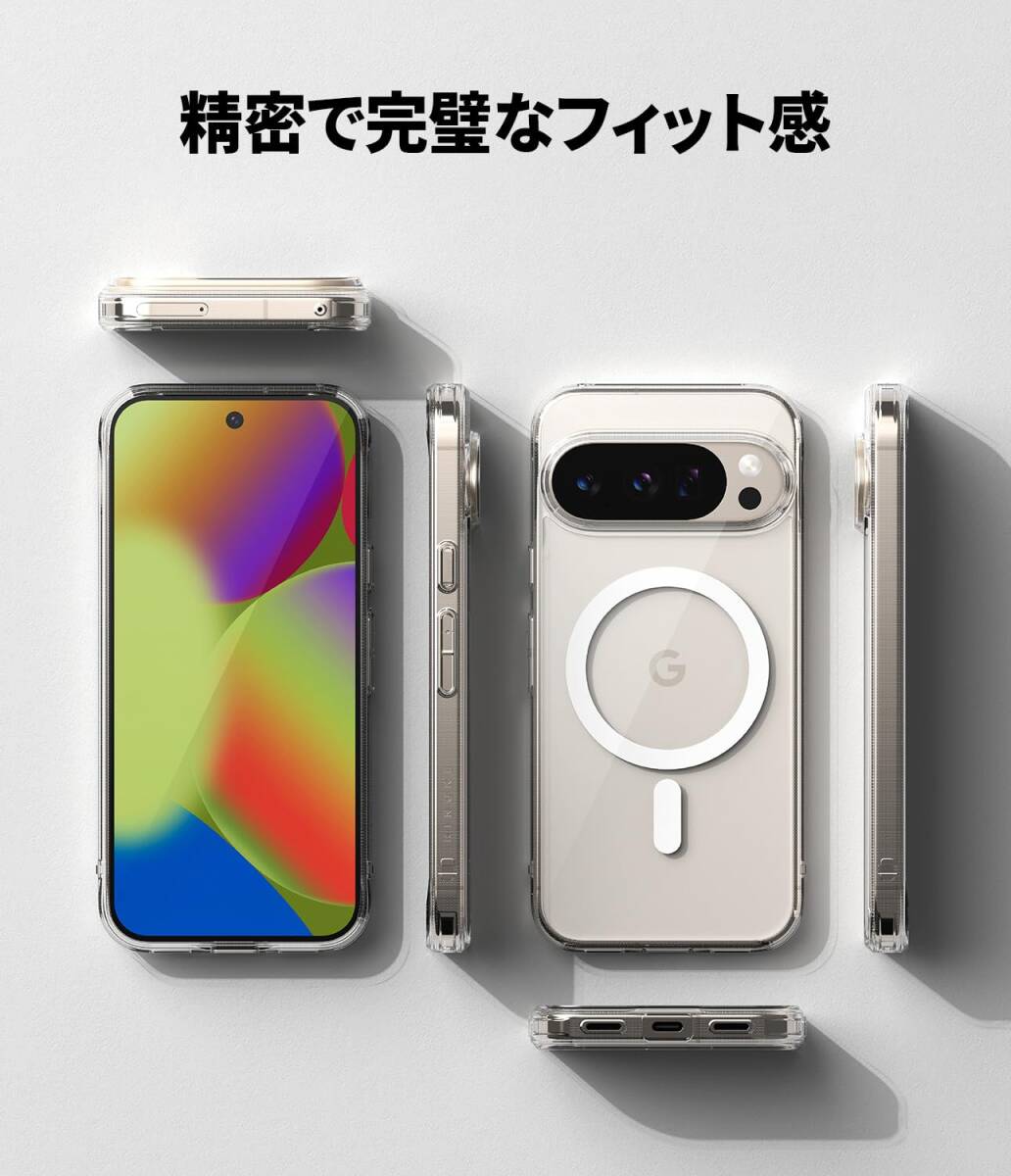 【Ringke Fusion Magnetic】特殊加工により搭載されたマグネットでMagSafe / PixelSnapに対応し、Ringke独自の黄変防止技術が集約されたPC+TPU新素材の、Google Pixel 10 / 10 Pro 用 ケースです。