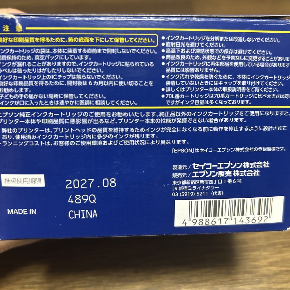 ☆エプソン EPSON 純正 IC6CL70L 増量☆期限2027年8月 6本セット☆送料185円☆