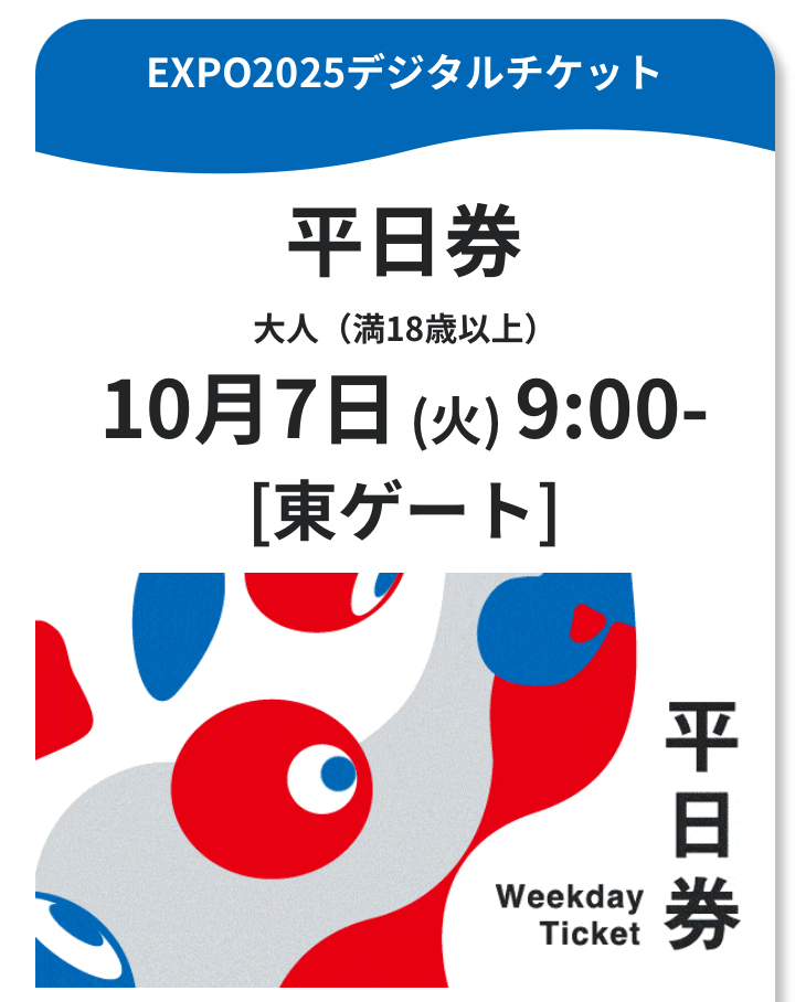 大阪万博 10/7 東ゲート 9時 大人1枚 10月7日(火) 9:00入場 関西万博 チケット EXPO2025