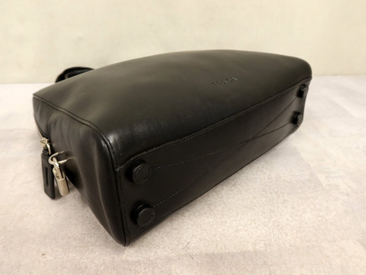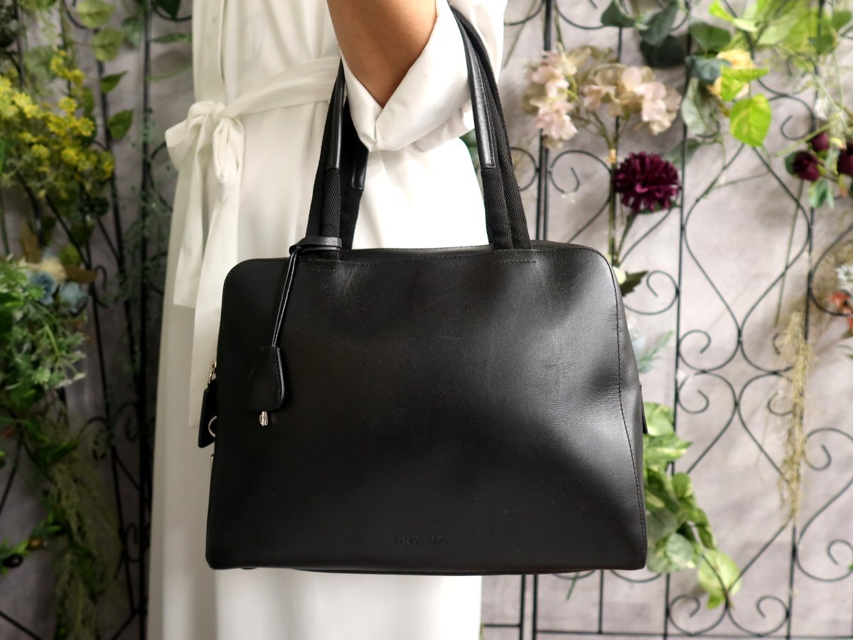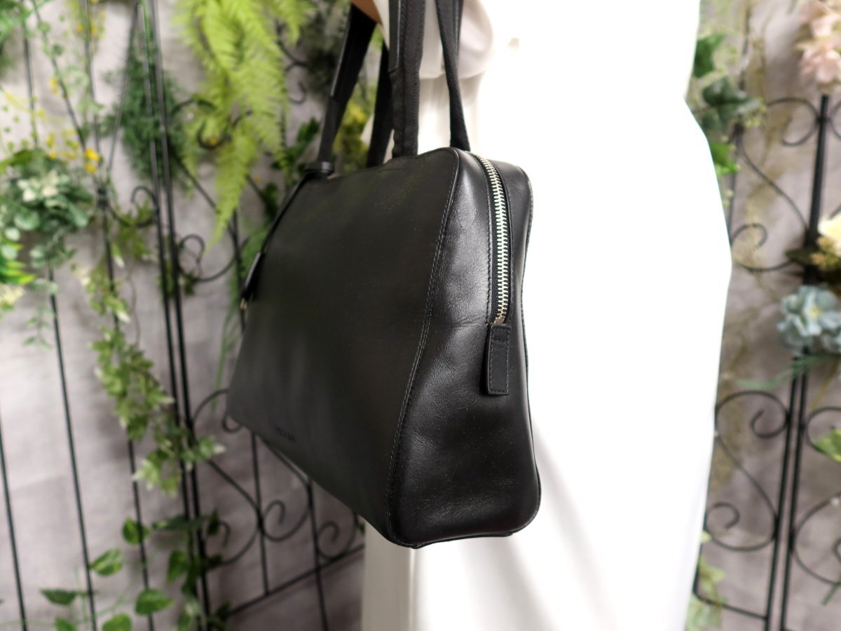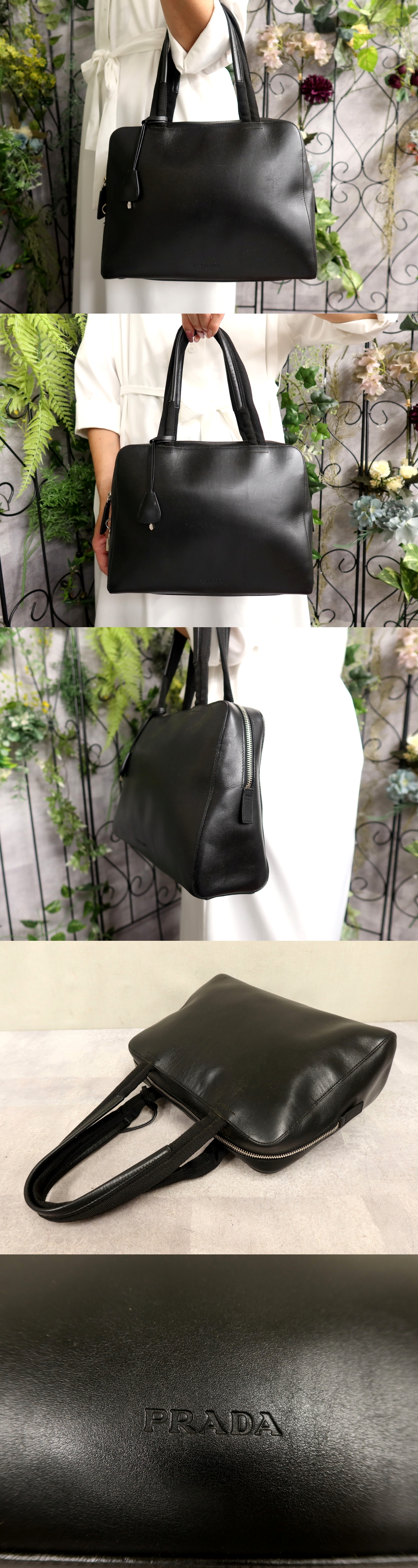 ●超美品●PRADA プラダ●ロゴ型押し●カーフ レザー 本革●ハンド バッグ●黒●シルバー金具●イタリア製●ヴィンテージ●B5●Js60839
