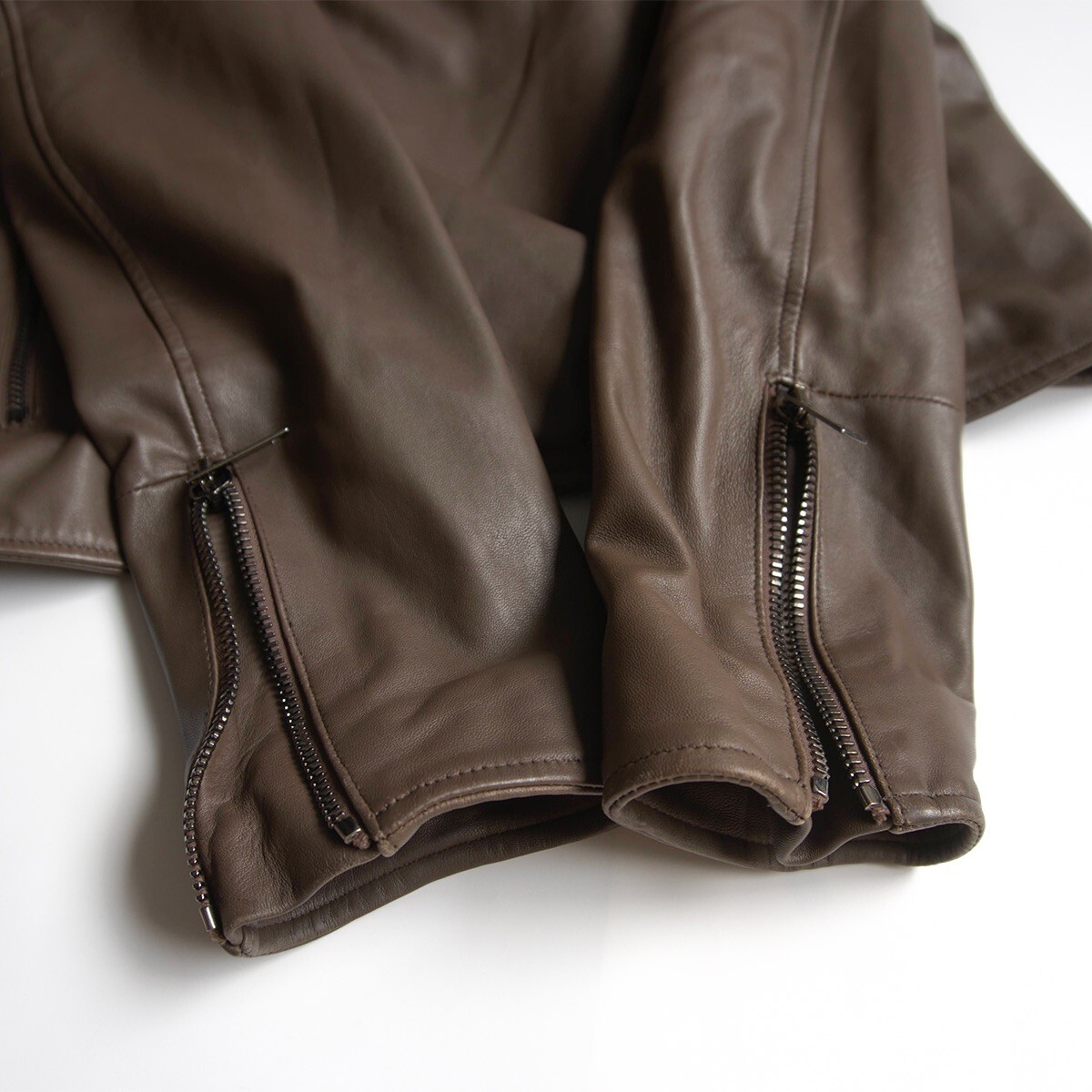 上質なラムレザーを使用したライダースジャケット。お色はブラウン。
