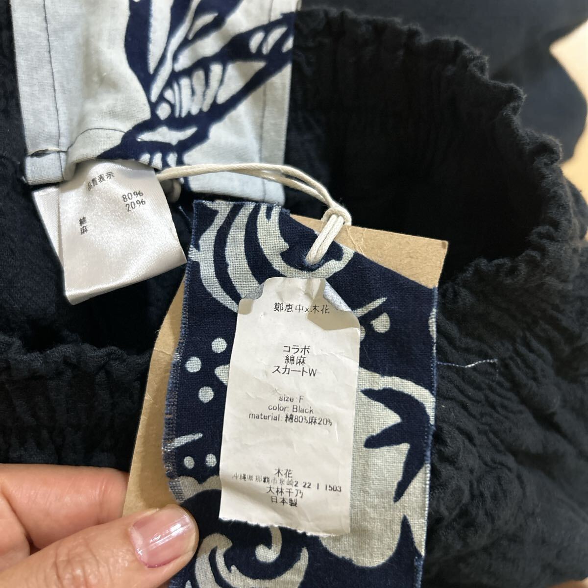 新品未使用鄭惠中×木Bocca花大林千乃コラボ綿麻ロングスカートネイビー