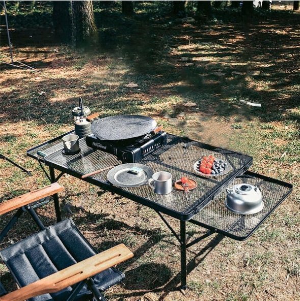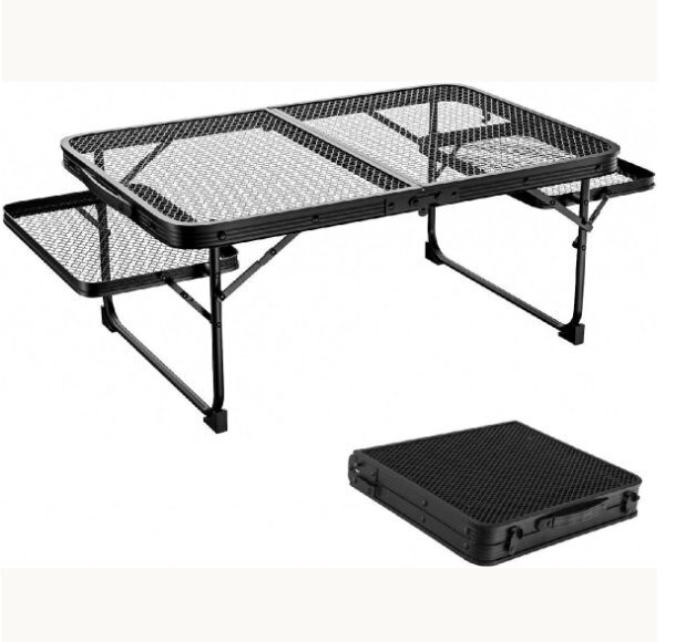 ャンプ テーブル メッシュ アウトドアテーブル 折り畳み サイドテーブル付き 軽量 コンパクト ローテーブル 折りたたみ 耐熱 耐重荷50kg