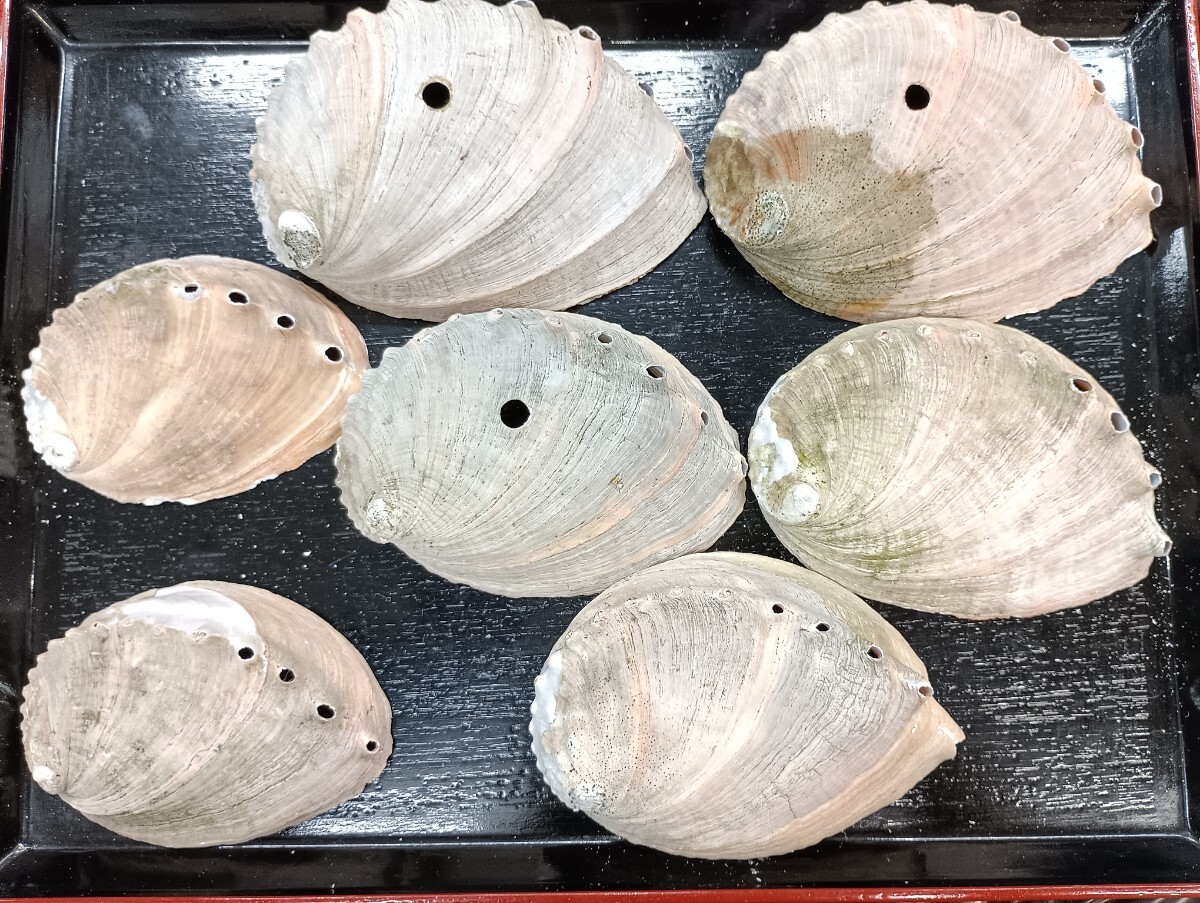 日本海で水揚げされたクロアワビの貝殻7枚セットです。
