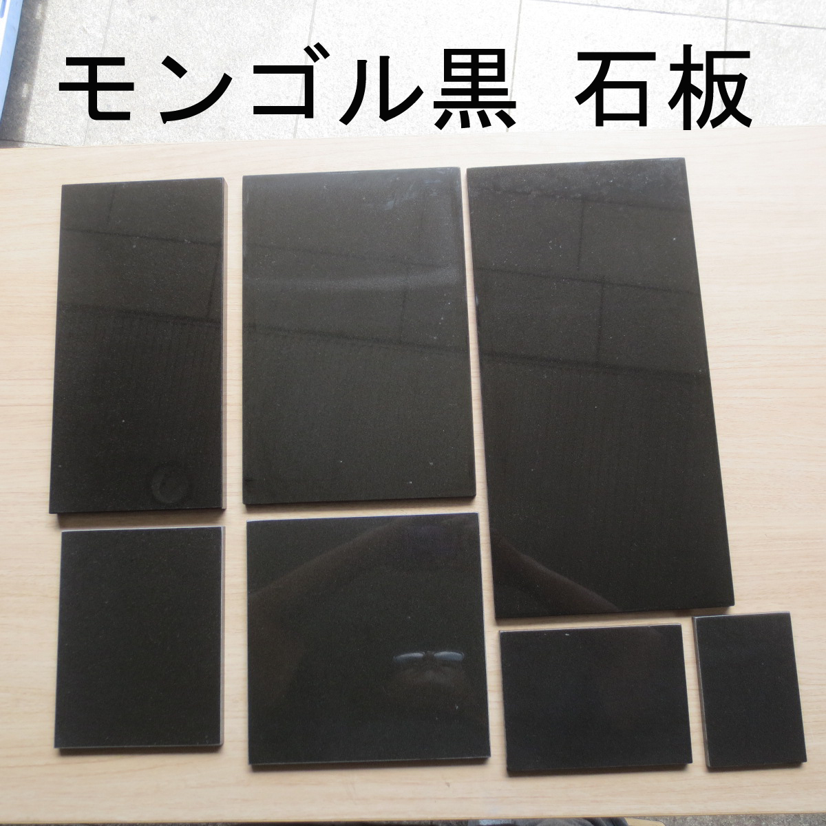 ご注意:内モンゴル産黒御影石の板石は、白色や黄色の斑点、色ムラや磨きムラ、磨き跡、線キズなどがある製品が一般的です。