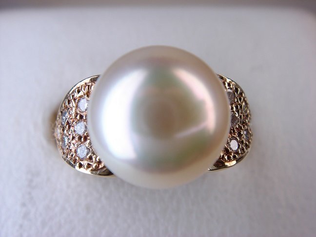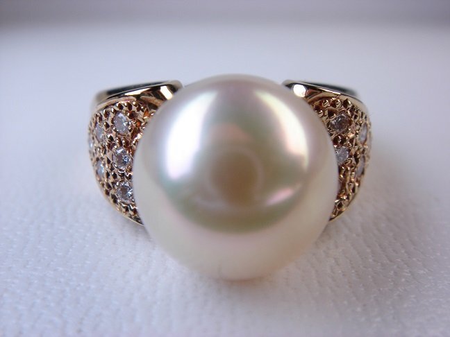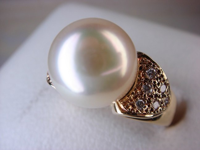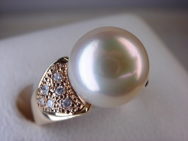 ★新品・送料無料★18金あこや本真珠パールリング★0.12ct★