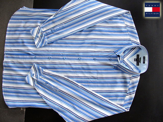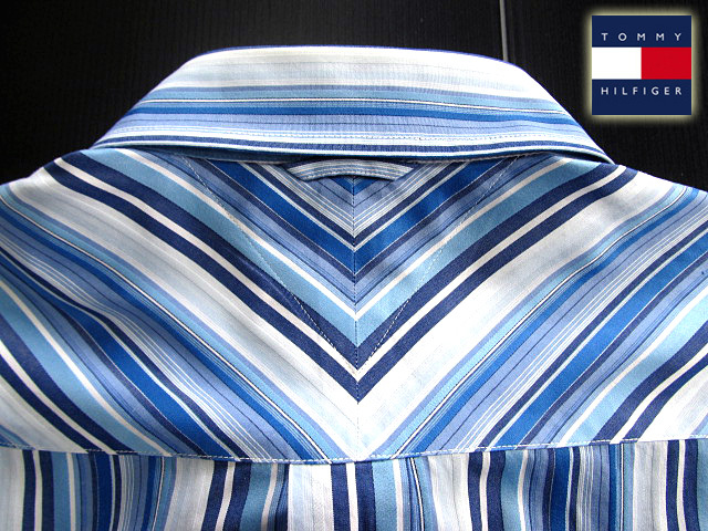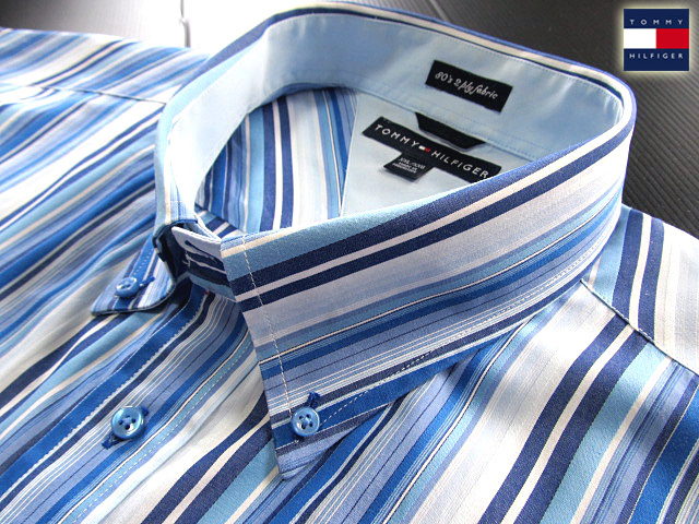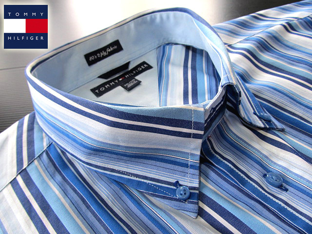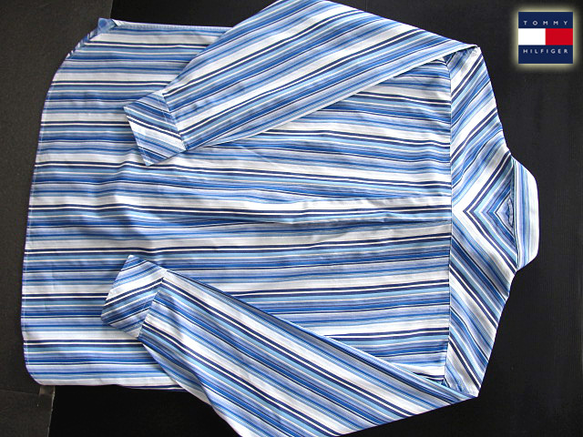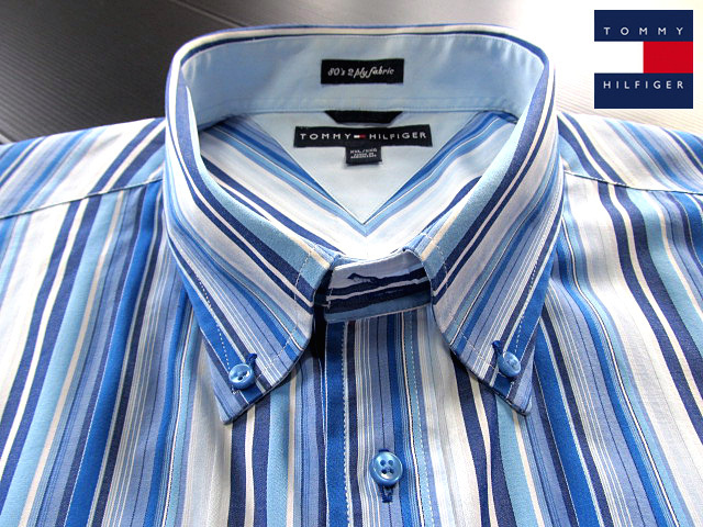 ★500円スタート!トミーヒルフィガー TOMMY HILFIGER ボタンダウンシャツ 長袖 XXLサイズ 希少品 マルチストライプ ブルー×ネイビー