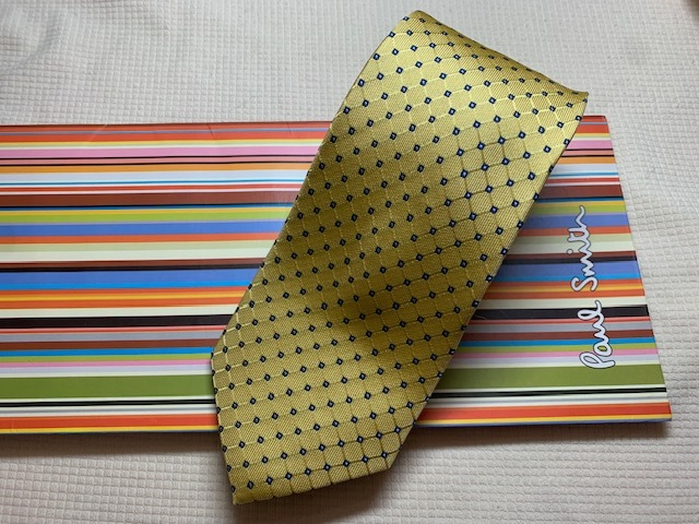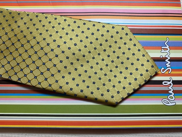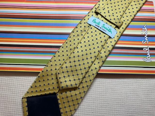Paul Smith ポールスミスMade in Italy ネクタイ黄色■柄シルク100