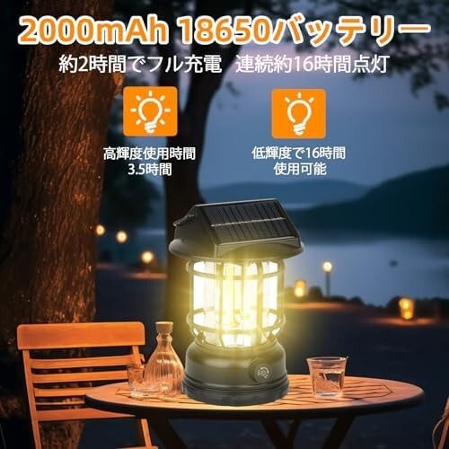 Chroleia LED ランタン ソーラー充電式 キャンプ ランタン 充電式 & Type-C 充電機能 高輝度 防災・アウトドア用 防水仕様 携帯型 コンパクト 懐中電灯 キャンプ ライト ソーラー充電