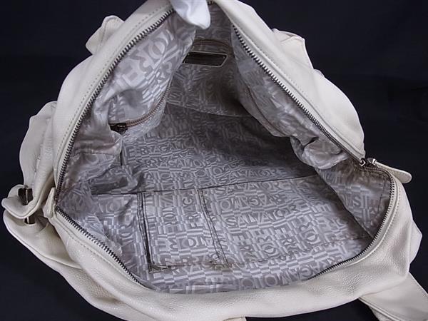 1円 Salvatore Ferragamo フェラガモ ガンチーニ レザー トートバッグ ハンドバッグ レディース アイボリー系 FV0344