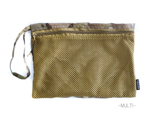 1枚目の写真が出品物です。 ●カラー:【マルチカモ】 ●サイズ:H20cm × W28cm ●素材:ポリエステル 「リップストップ生地を使用した耐久性に優れたポーチです。収納に便利なバックインバックなどにオススメです。メッシュ素材になっているので中身が確認できるのも便利です。」 クロネコネコポス便200円で全国にお送りいたします、落札価格にプラスでお願いいたします。