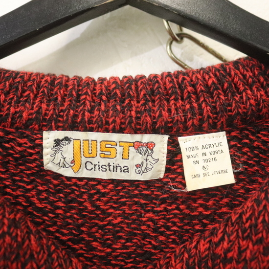 i656 80sビンテージ JUSTCRISTINA アクリルニットセーター■1980年代製 表記Mサイズ レディース 赤 レッド ミックスカラー アメカジ 古着