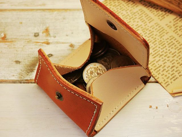 使い易い!!BOX型レザーコインケース ハンドメイド 姫路レザー 牛本ヌメ革 キャメル