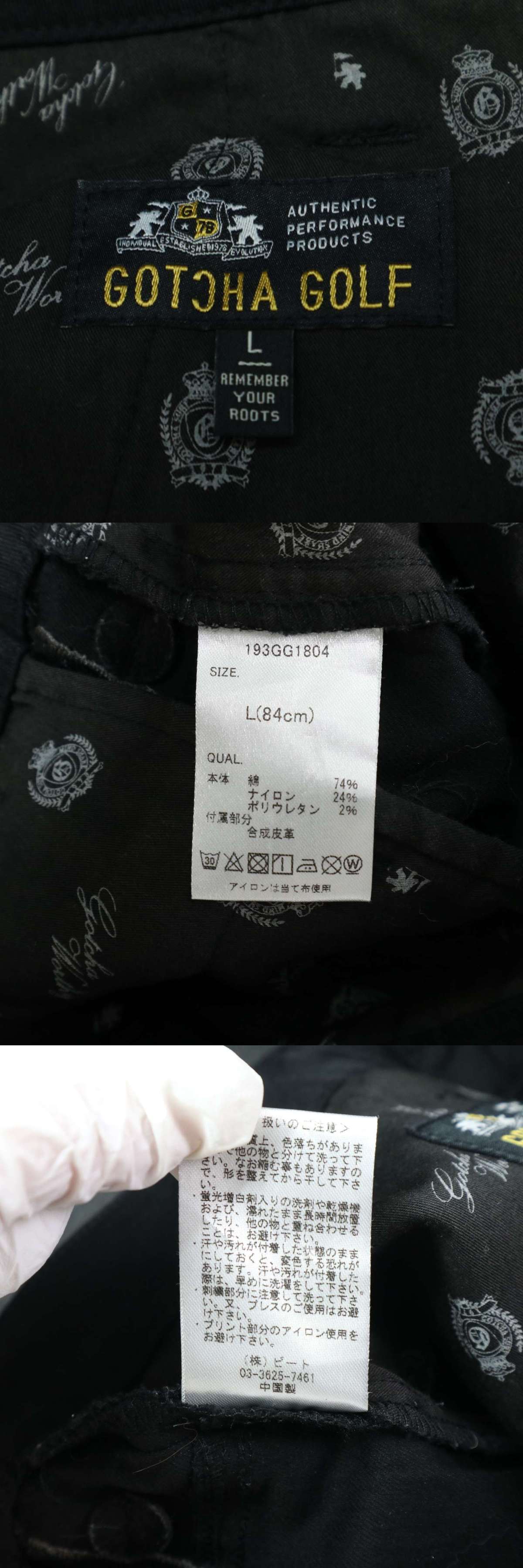GOTCHA GOLF ガッチャ ゴルフ 通年 ロゴ刺繍★ ストレッチ スラックス パンツ Sz.L メンズ 黒