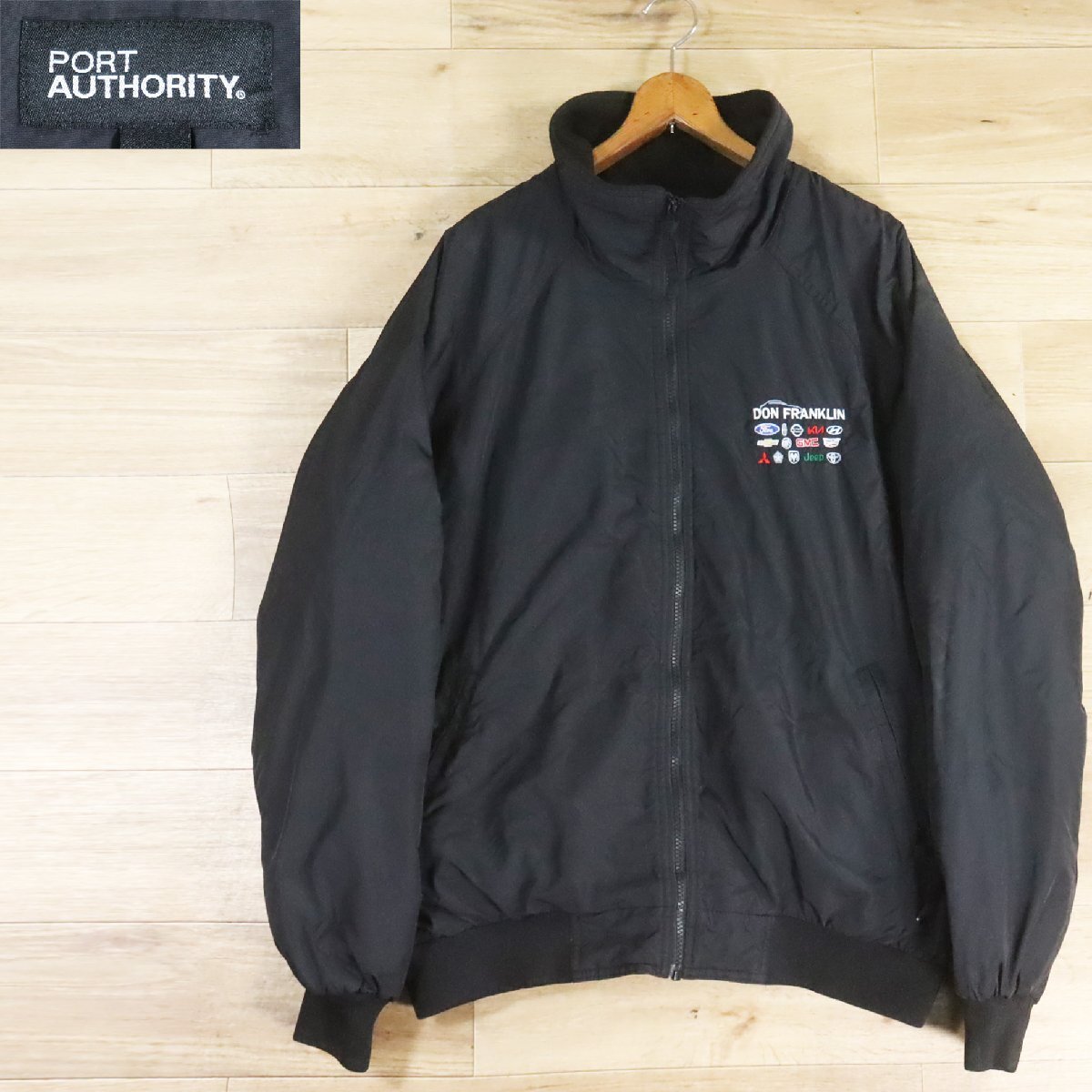 @9R/Y7.25-5 PORT AUTHORITY  ナイロンジャケット 裏フリース ブルゾン 企業刺繍 カーブランド ジャンパー L ブラック
