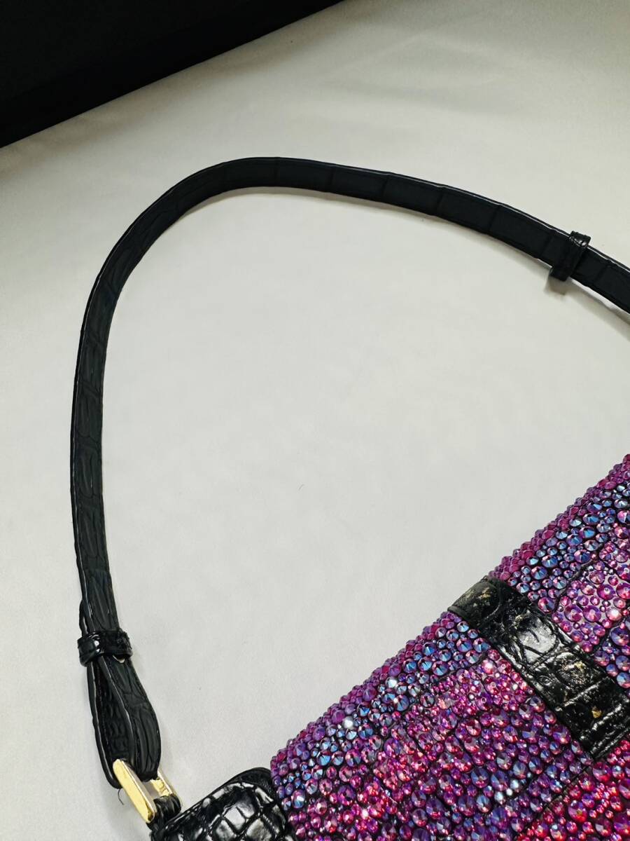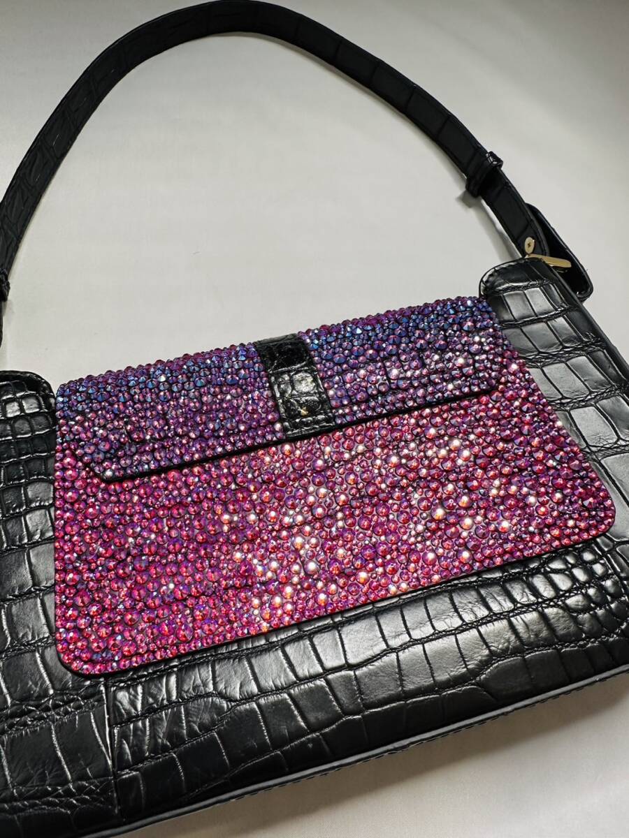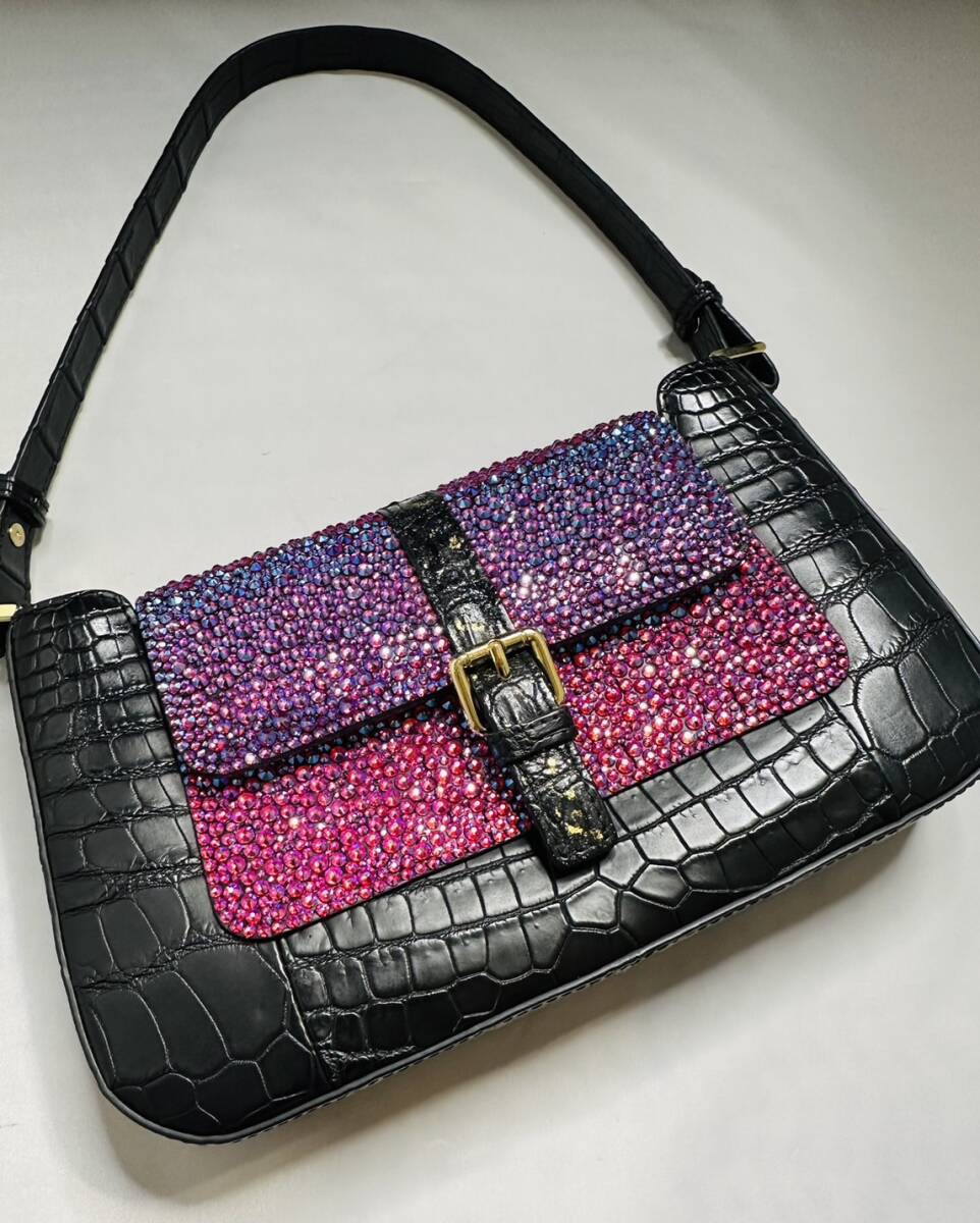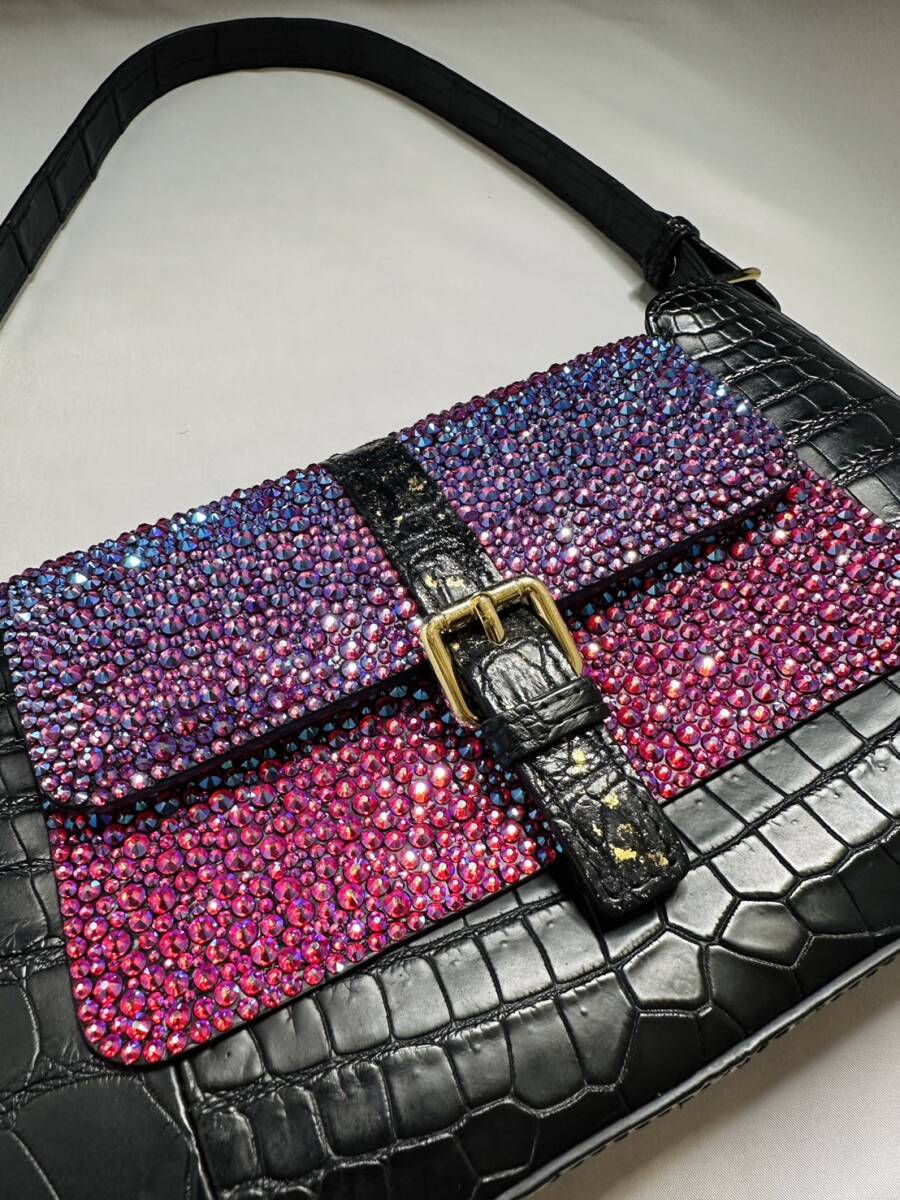 【定価68万!最高級1点物】クロコダイル スワロフスキー 宇宙色 クリスタル 装飾 ハンドバッグ レザー 本革 バッグ トート エキゾチック