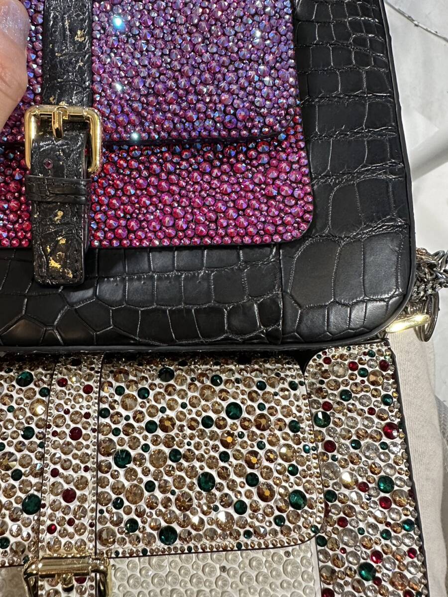 画像ではセンターストラップに宝石を付けてもらっていた時代のも残っていますが、