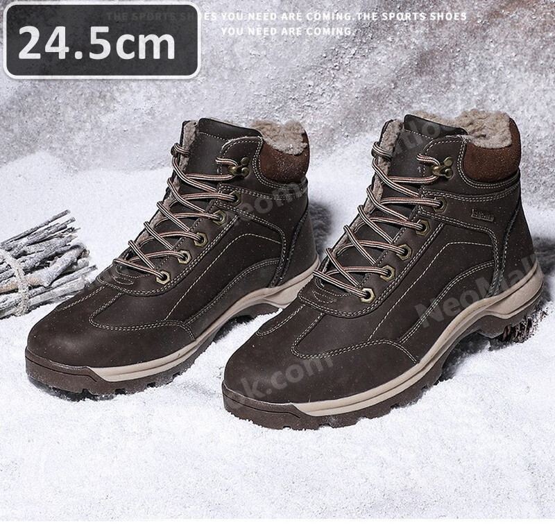 メンズ ブーツ 【963】 24.5cm ダークブラウン ムートンブーツ スニーカー ウィンターブーツ 裏起毛 防水 防寒 防滑 冬用靴 綿靴