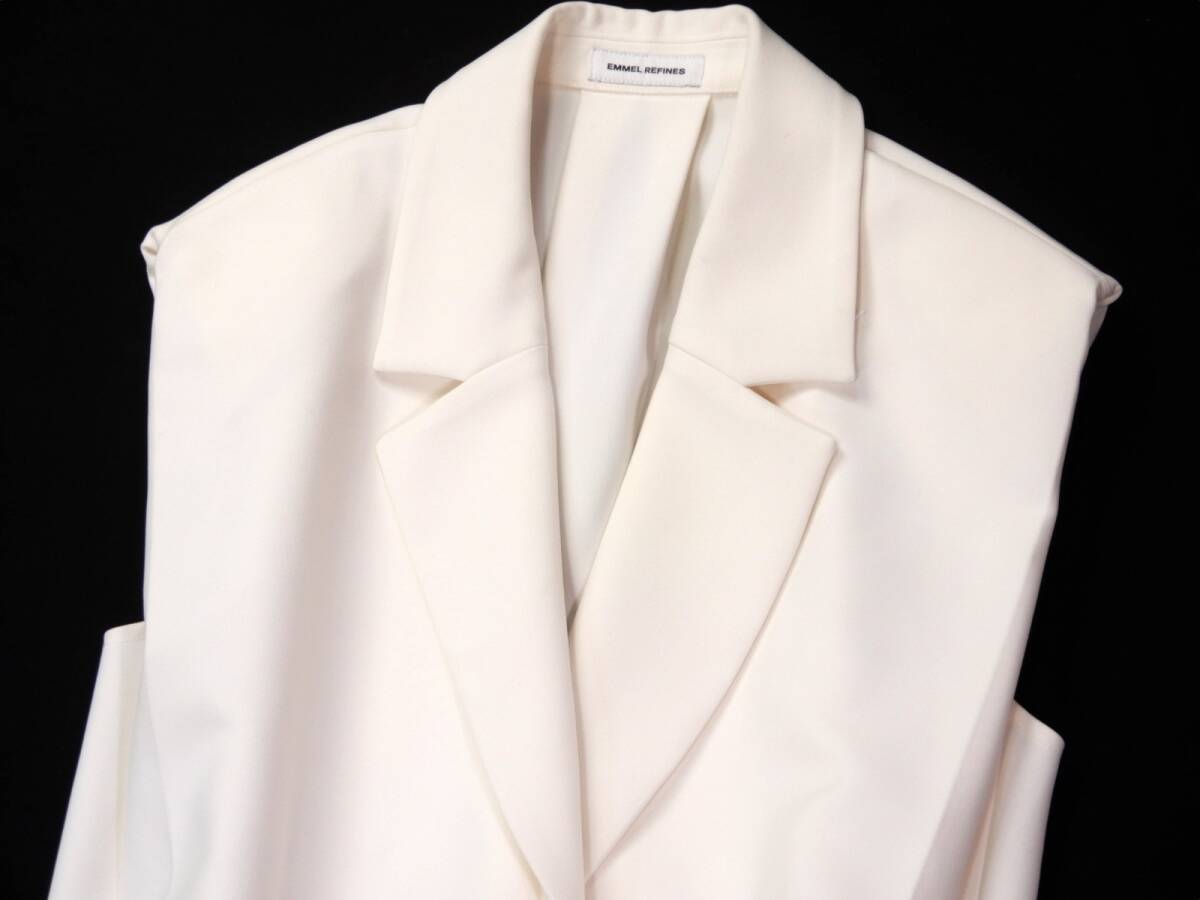 肩パットが印象的なトレンド感たっぷりのジレ。