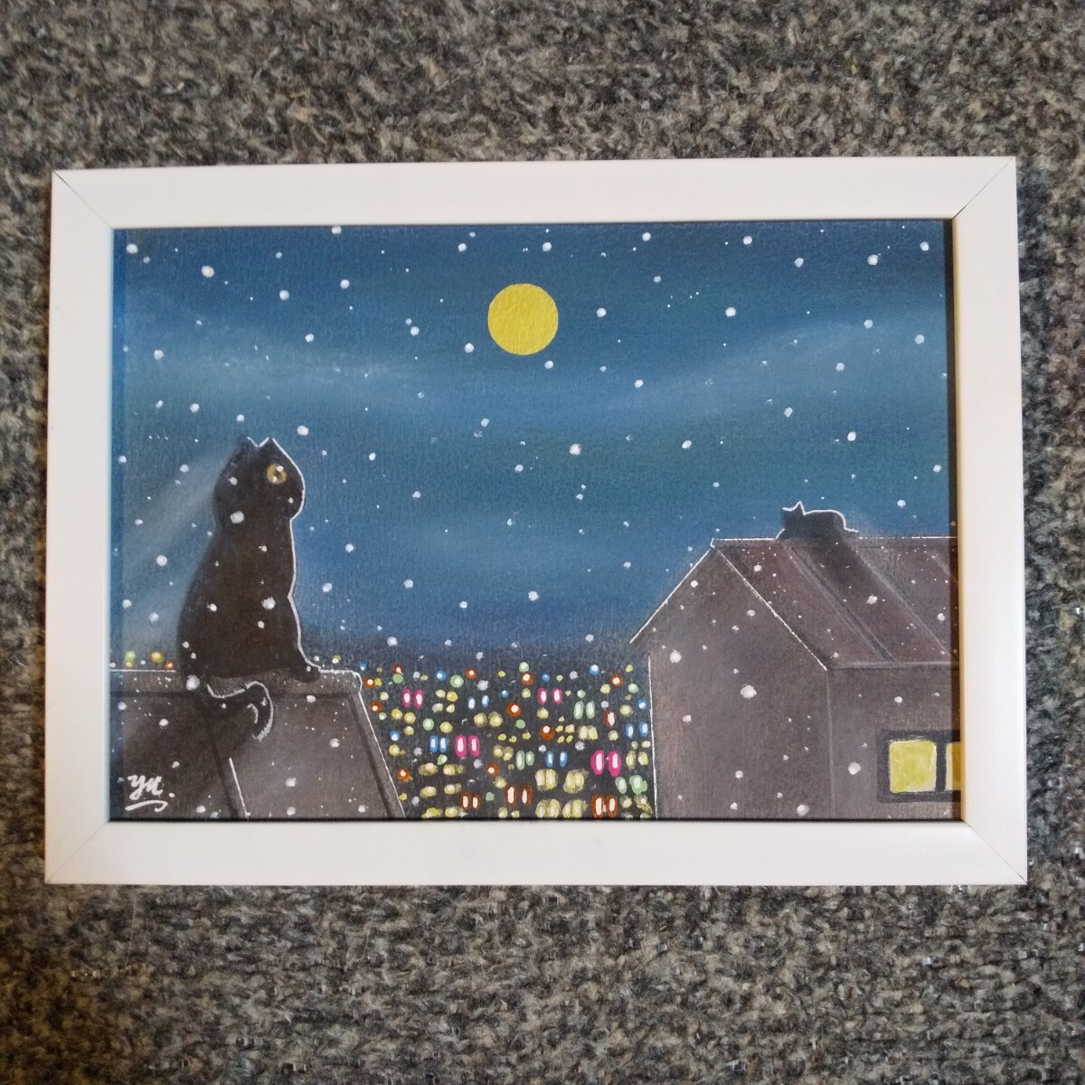 【匿名配送】絵画 「冬の夜」 2Lサイズ額つき。
