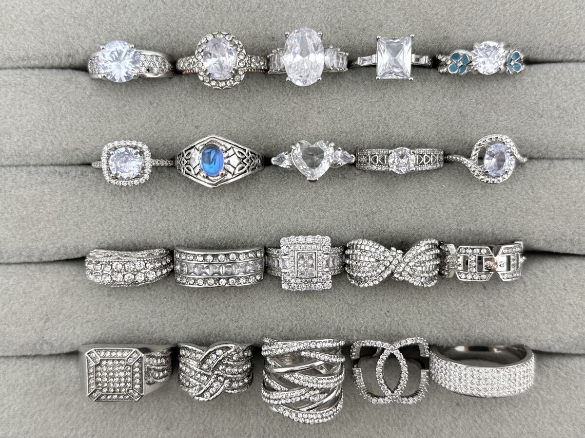J619 キュービックジルコニアなど リング 指輪 ヴィンテージ アクセサリー 未鑑定 素材不明 イミテーション品 まとめ売り おまとめ 大量