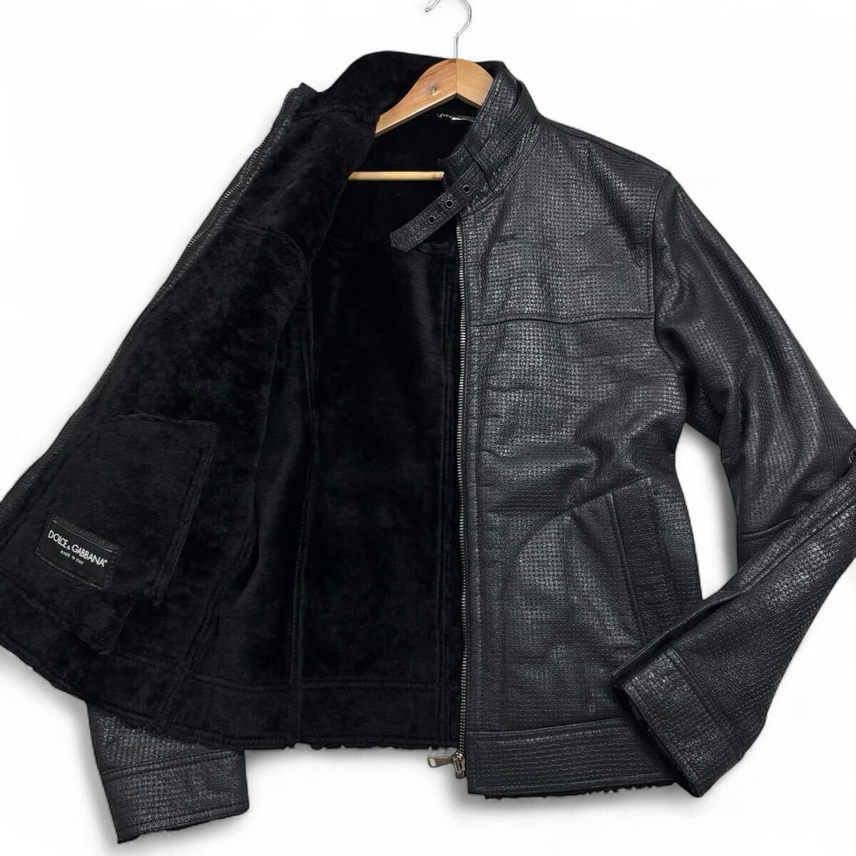 【極美品XLサイズ!!!】DOLCE&GABBANA ドルチェアンドガッバーナ シープスキン ムートンレザージャケット 羊革 ライダース メンズ サイズ50