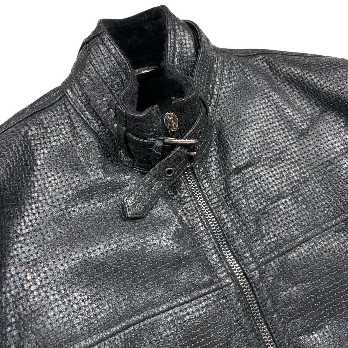 DOLCE&GABBANA ドルチェアンドガッバーナ シープスキン ムートンレザージャケット 羊革 ライダース メンズ サイズ50