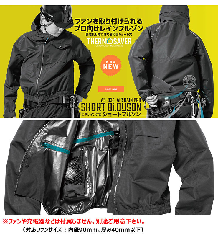 | 商品説明 | ファンを取り付けられるプロ向けレインブルゾンの登場です。 |