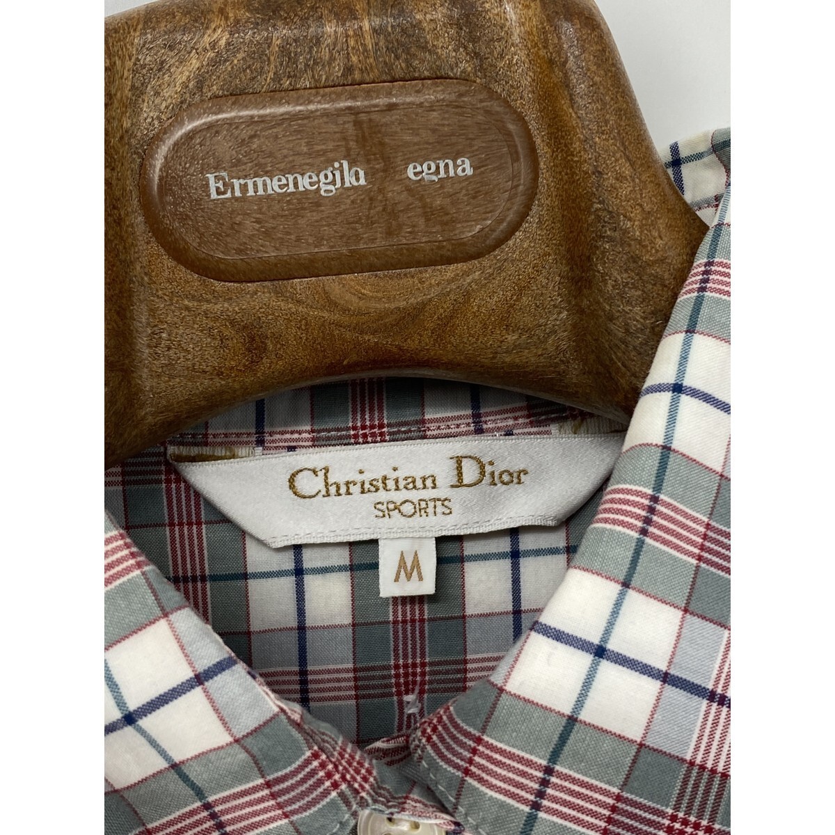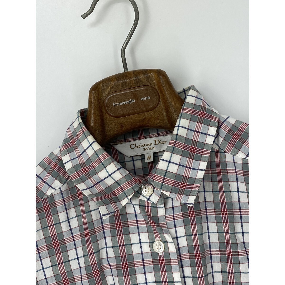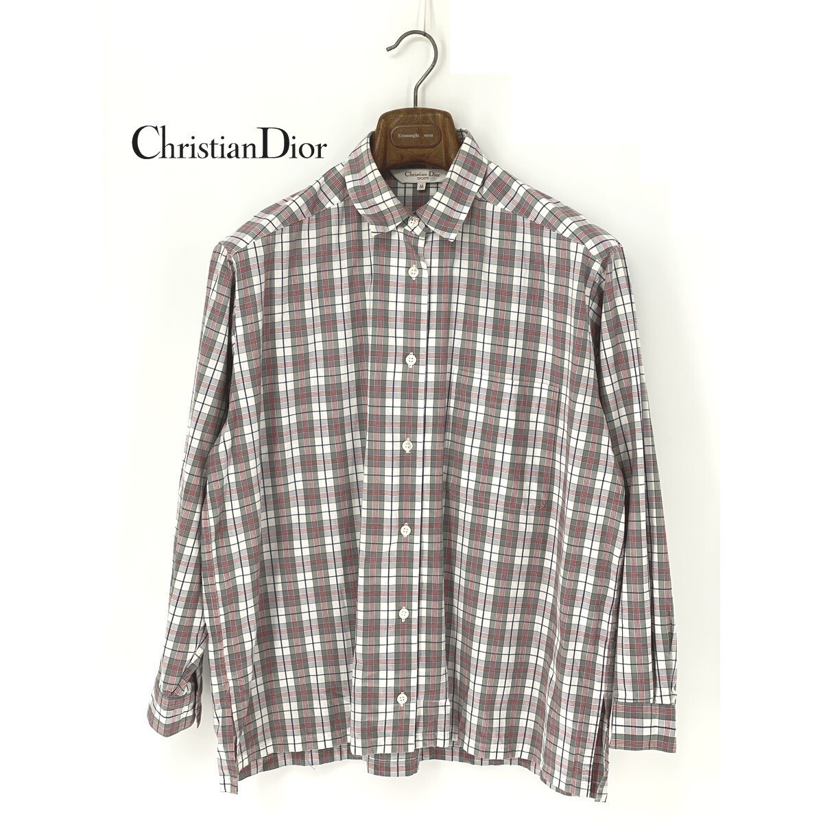 B0025/ビンテージ 80s 90s 極美品 Christian Dior クリスチャンディオール コットン チェック 長袖 カジュアル Yシャツ M 赤 レディース