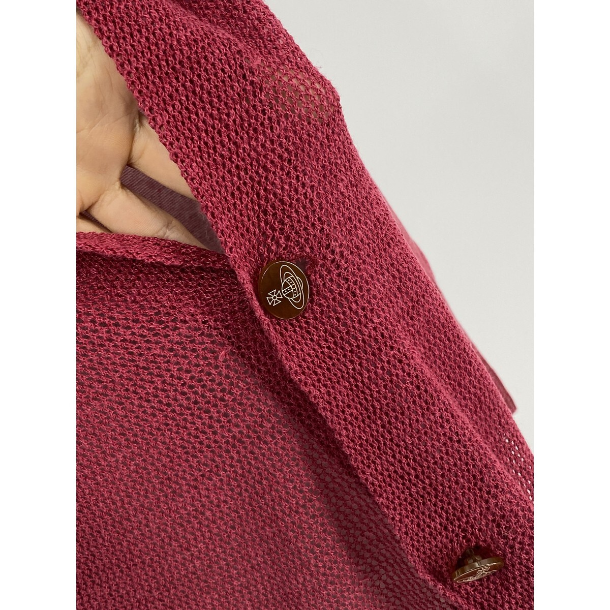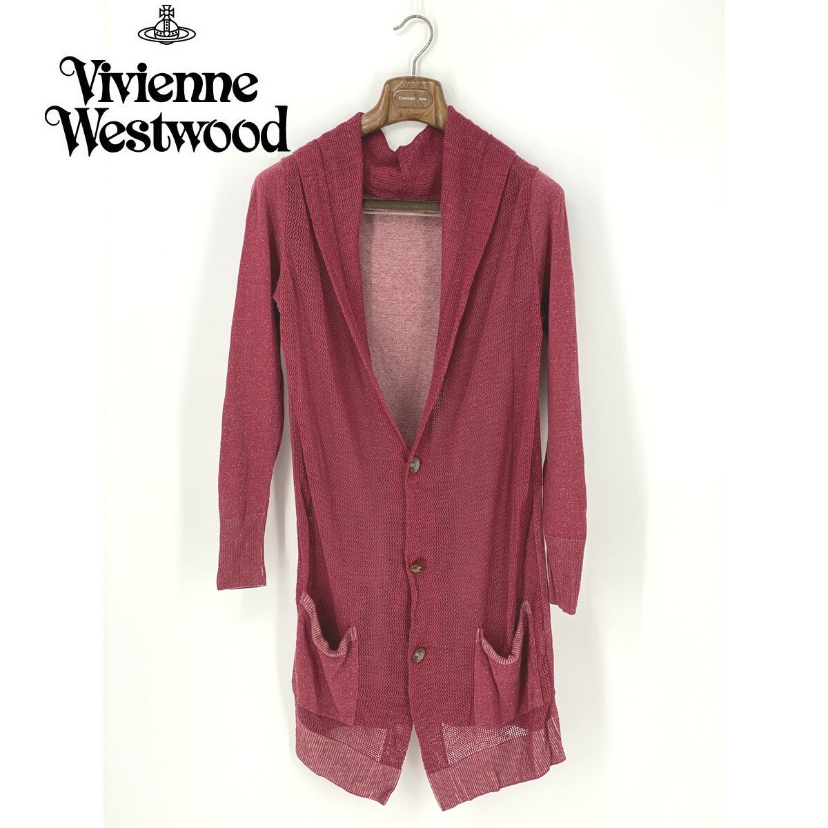A8825/極美品 春夏 Vivienne Westwood ヴィヴィアン リネン 長袖 レース ロング カーディガン ワンピース F 赤 レディース インコントロ
