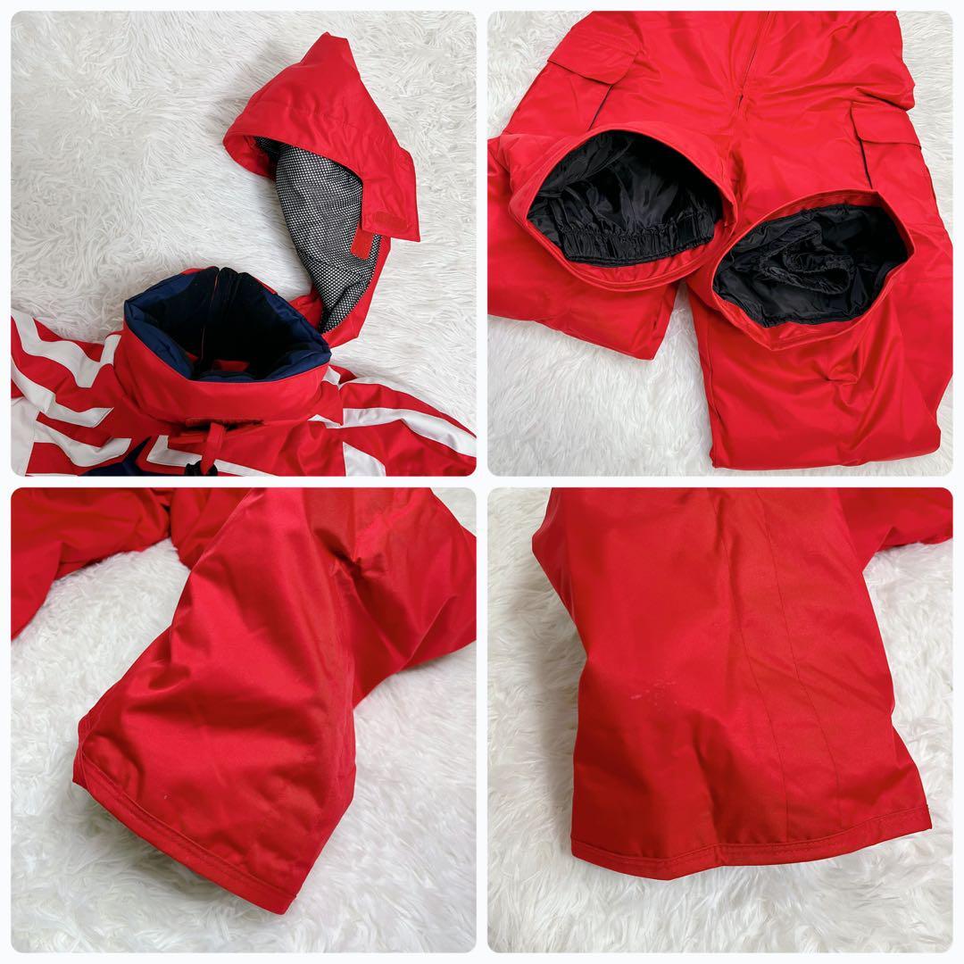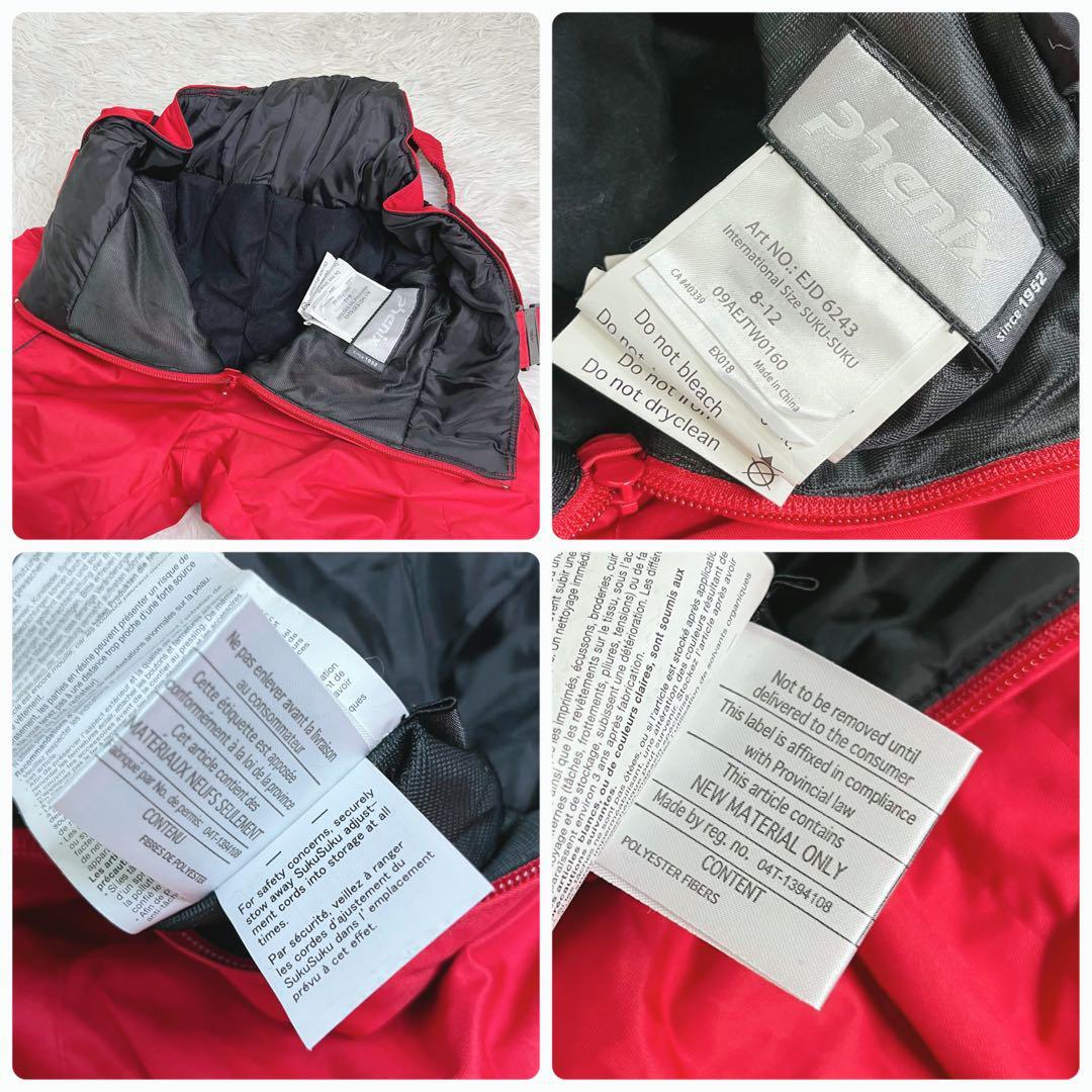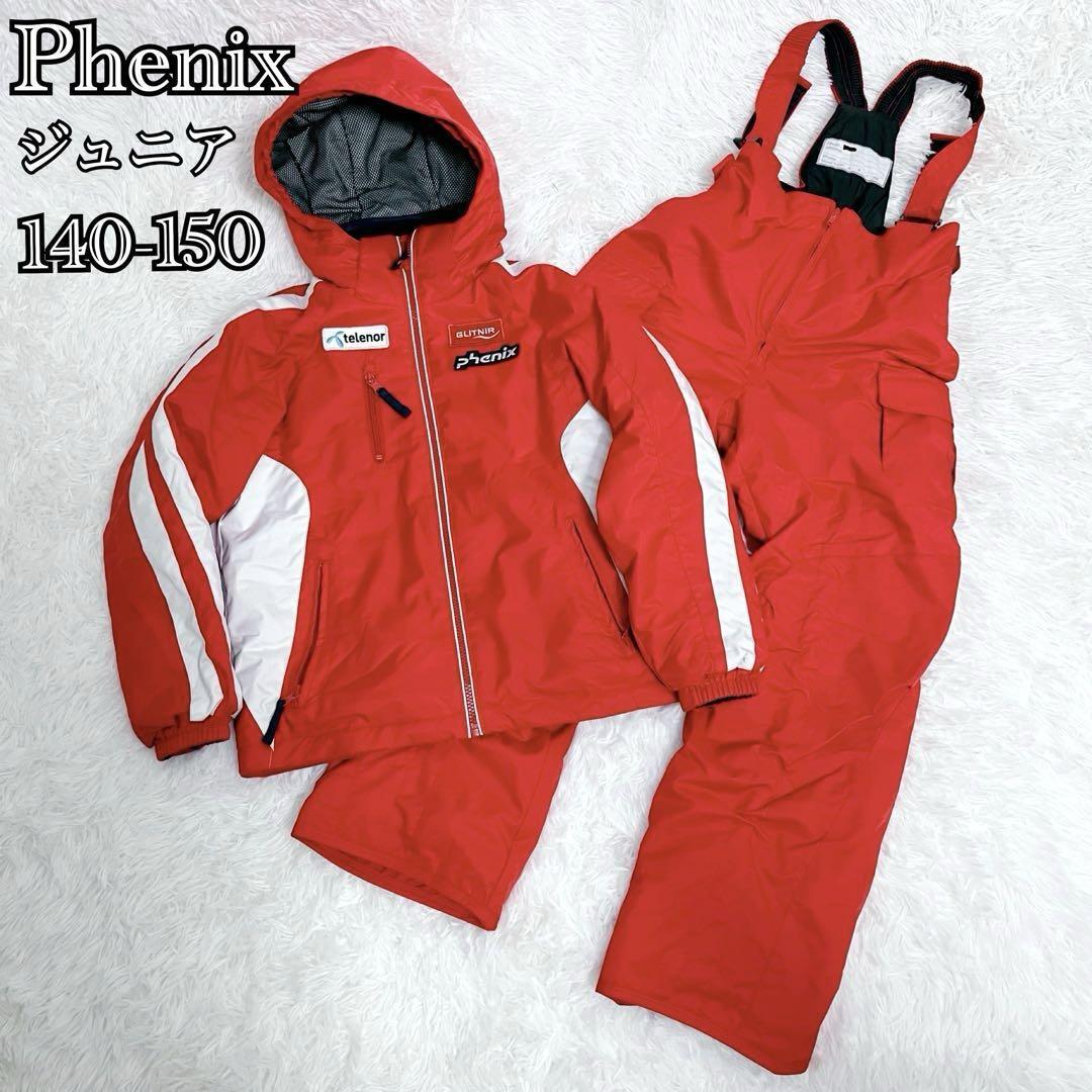 美品 フェニックス Phenix スキーウェア上下 140-150 ジュニア レッド ワッペン 小学生 スキー教室 スキー スノボ フード取り外し可能
