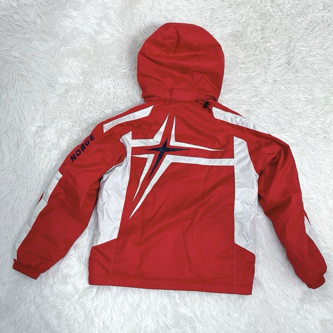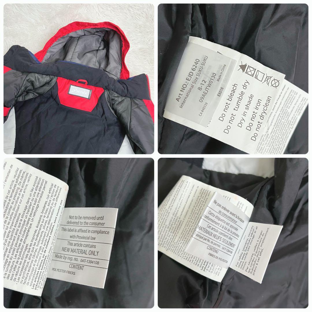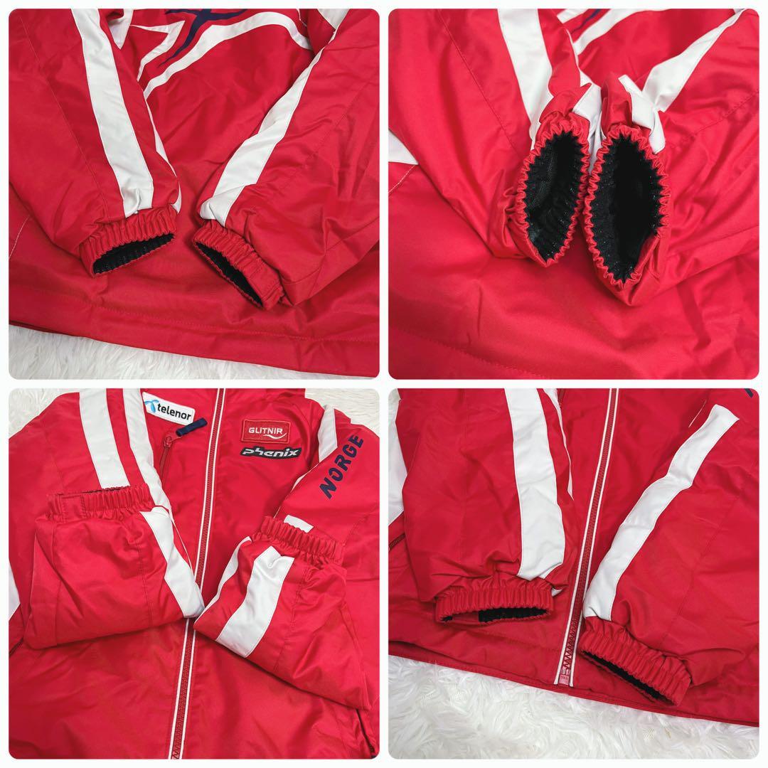 美品 フェニックス Phenix スキーウェア上下 140-150 ジュニア レッド ワッペン 小学生 スキー教室 スキー スノボ フード取り外し可能