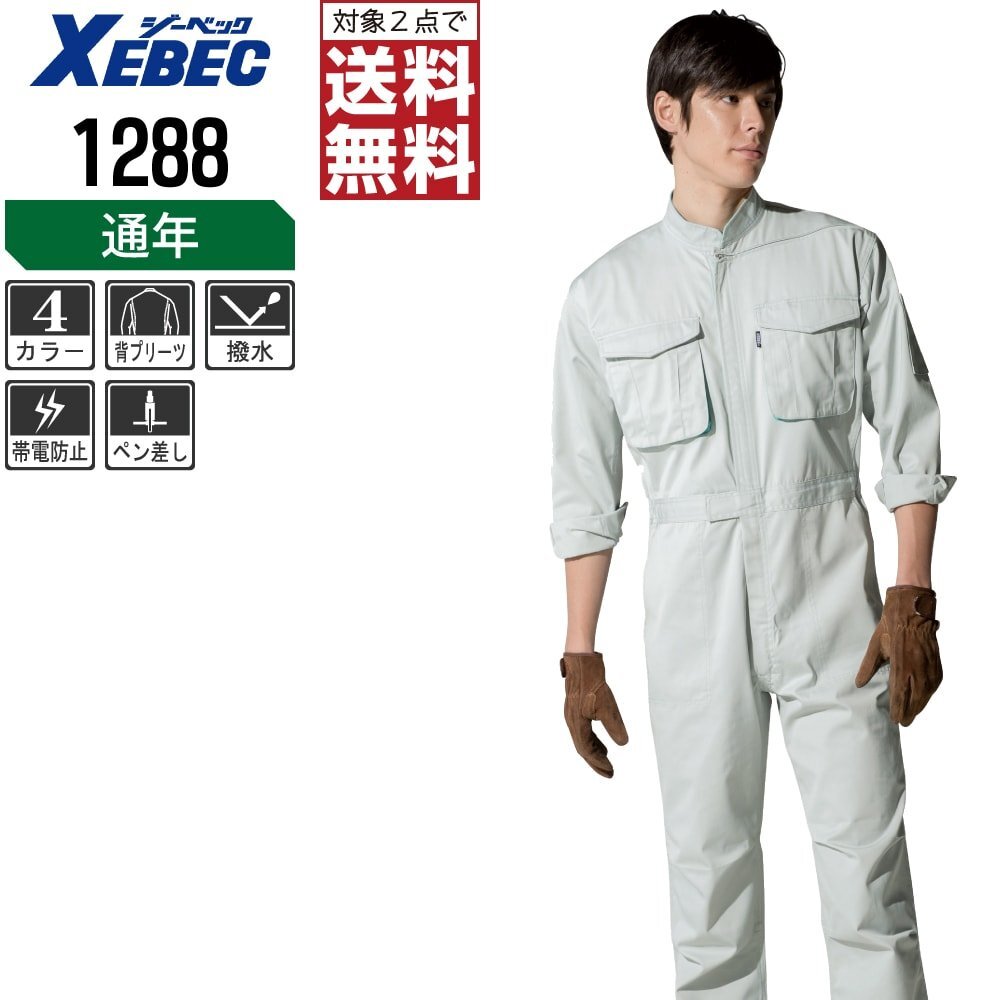 ジーベック 通年 長袖 つなぎ 定番 楽脱ファスナー 帯電防止 1288 色:グリーン サイズ:L ★ 対象2点 送料無料 ★