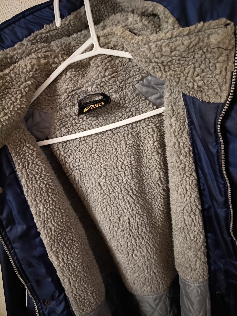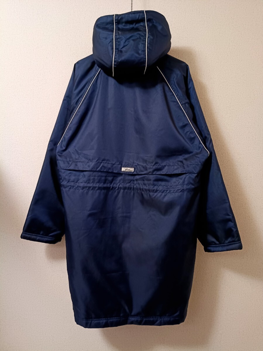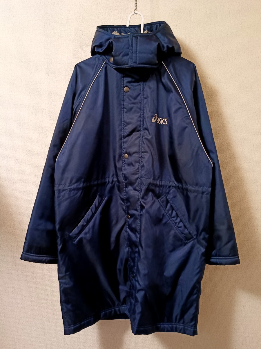 アシックスのロゴ刺繍がシンプルに入ったベンチコートです。フードの内側もしっかり防寒性のあるフリースを使用しています。特定用の競技用ではありませんので、あらゆるシーンで着用可能。これからの季節に確実に重宝するでしょう。主観ですがサイズ感メンズL程度。実寸をご確認下さい。