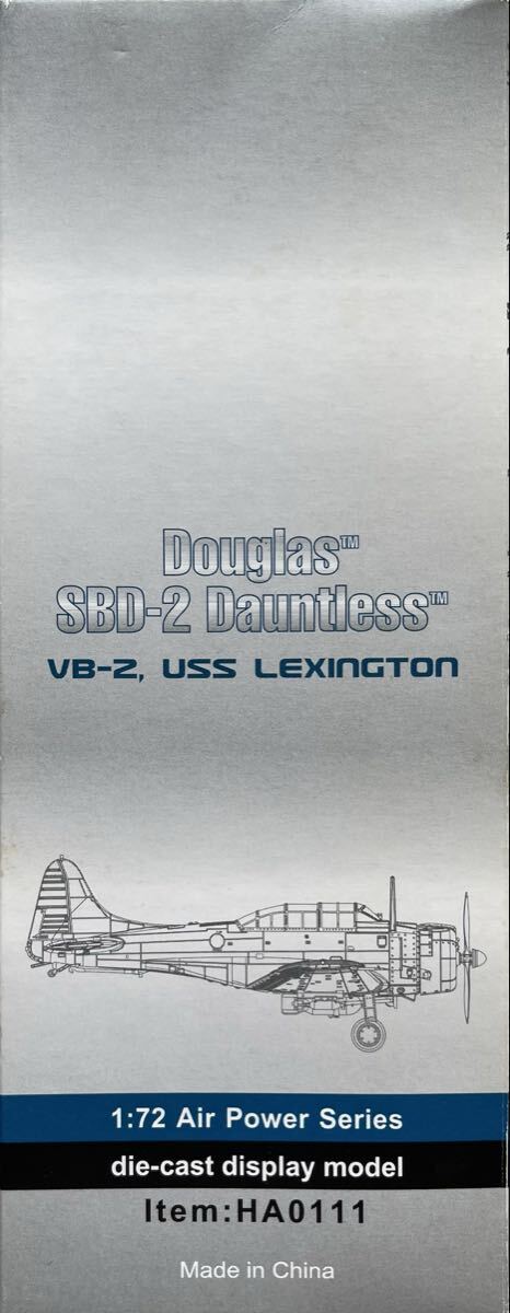 HOBBY MASTER/ホビーマスター ダイキャスト完成品エアーパワーシリーズ、ダグラス社 アメリカ海軍急降下爆撃機 SBD-2 ドーントレスの新品未開封品になります。スケールは1/72となります。