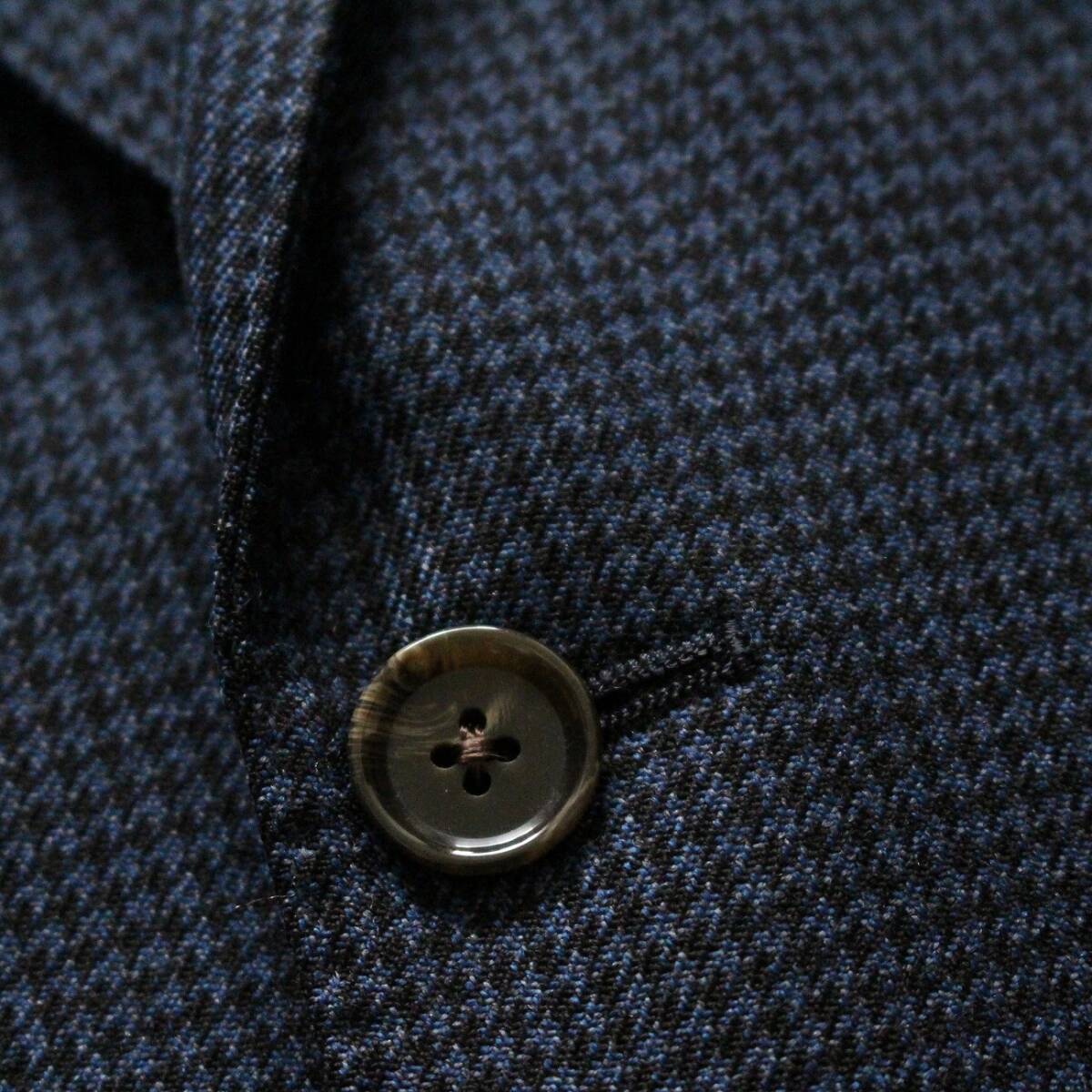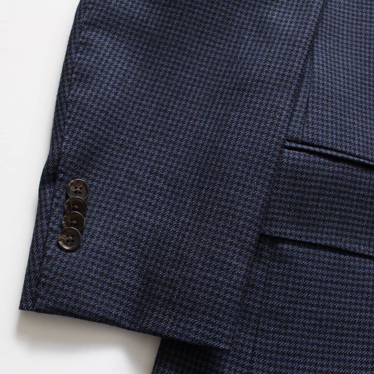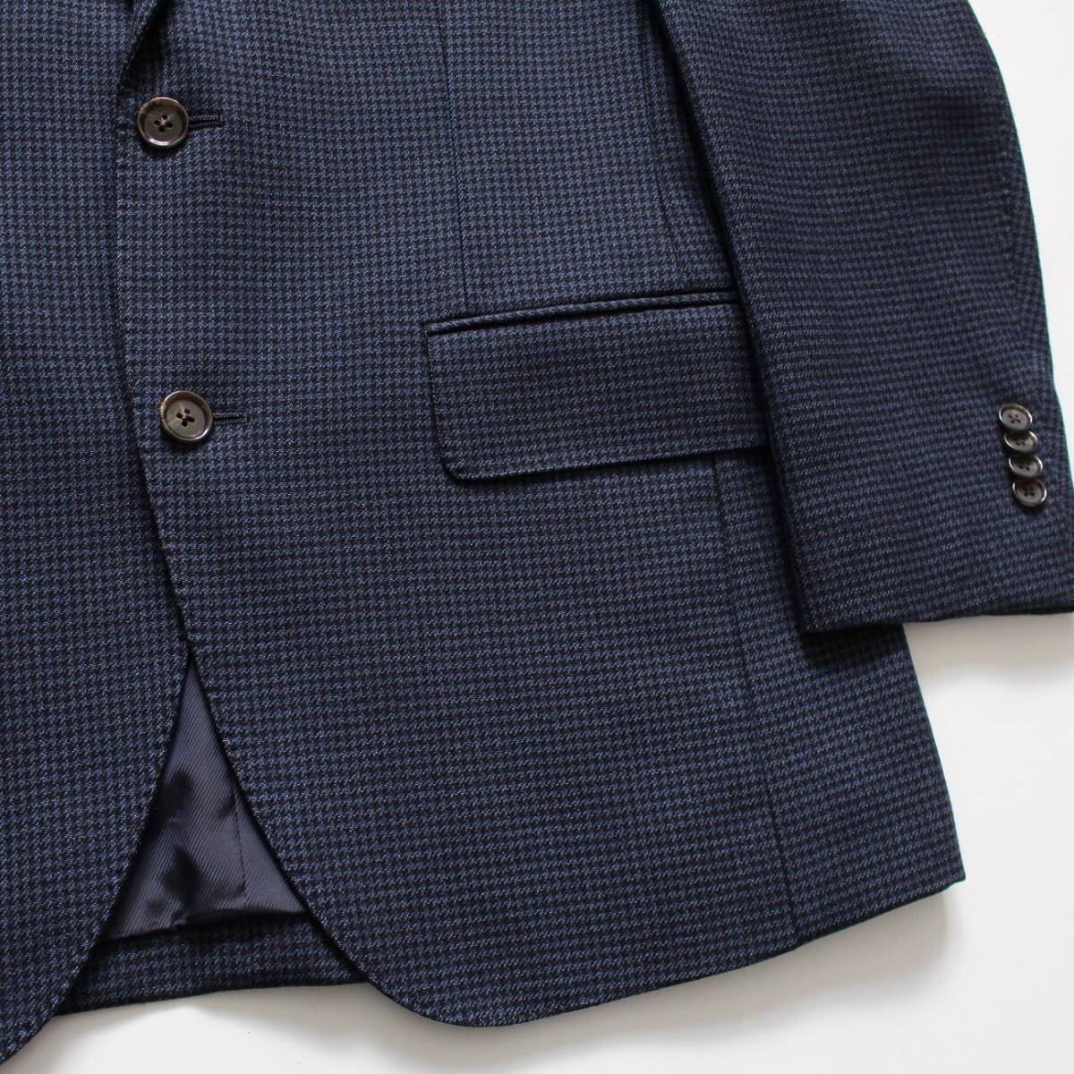 千鳥格子柄の柔らかいウール素材で、前は2つボタン、サイドベント、総裏地、