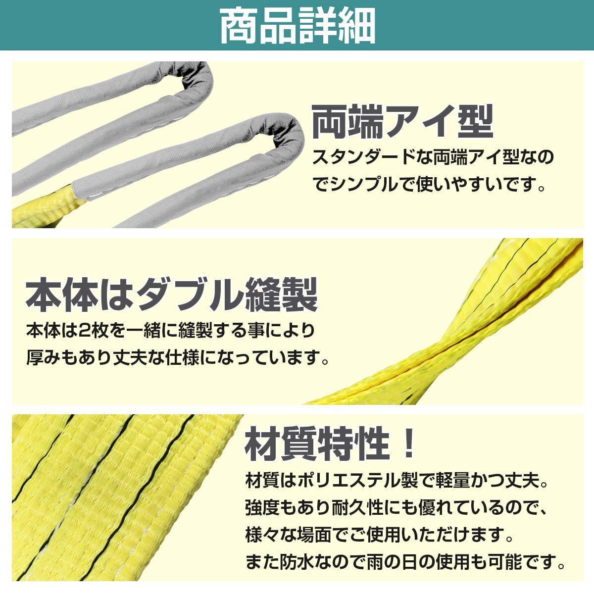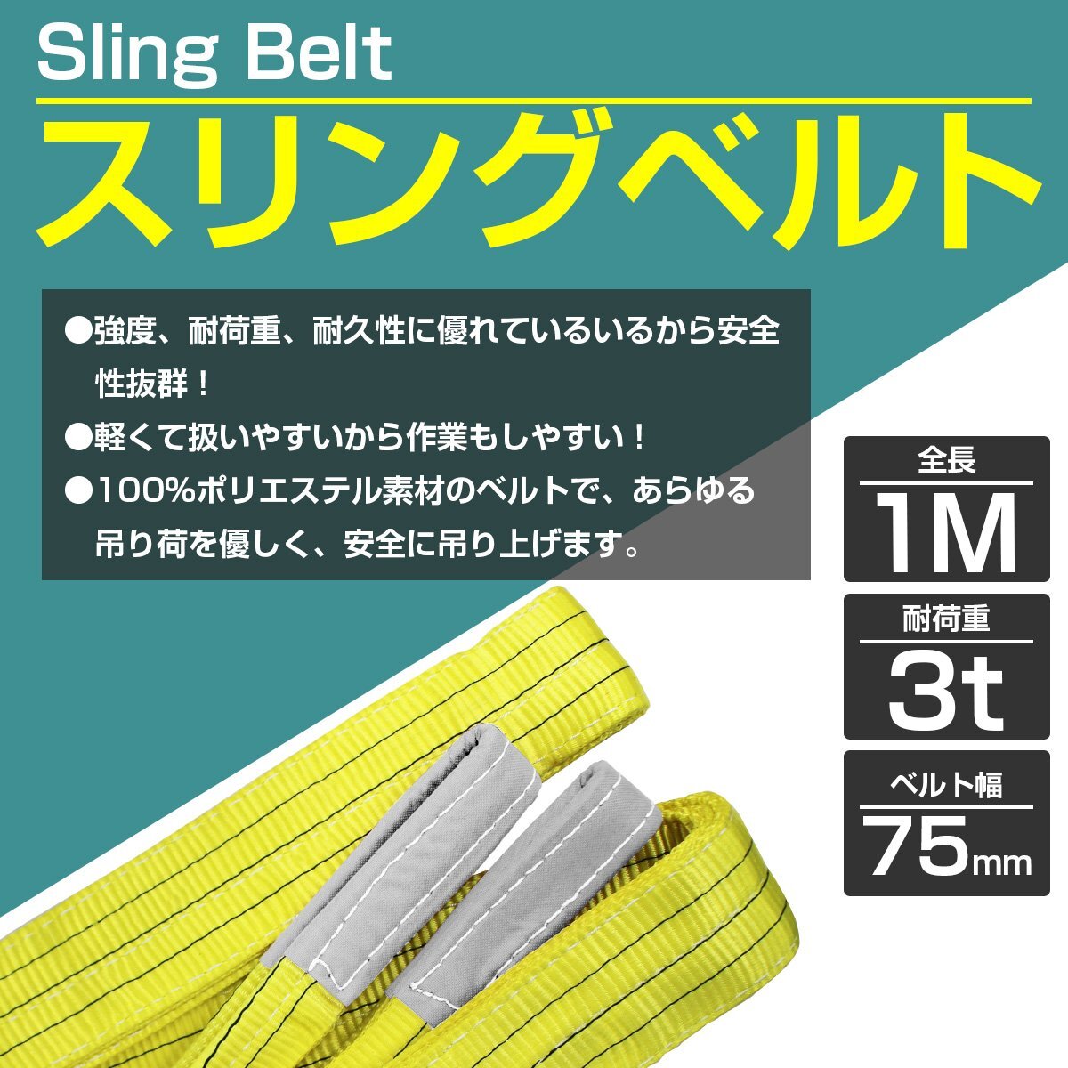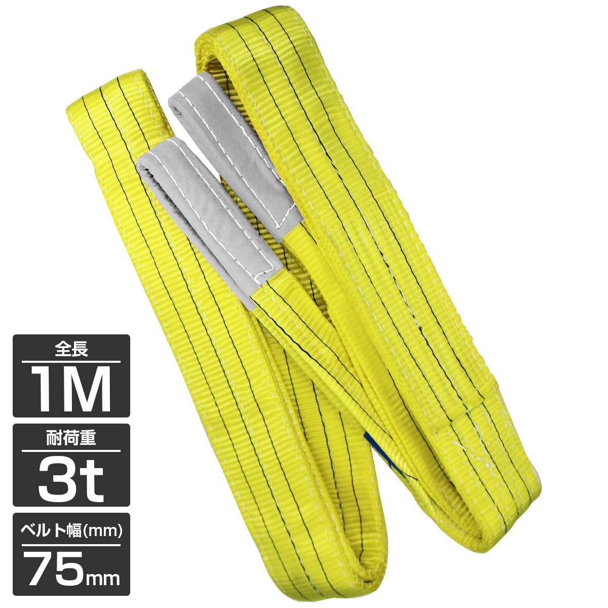 [1本/耐荷3t/長さ 1m] スリング ベルト 吊上げ ナイロン クレーン ロープ 荷吊り 玉掛け 牽引 運搬 3000kg 3トン 幅75mm