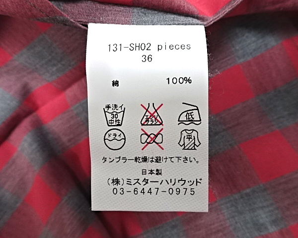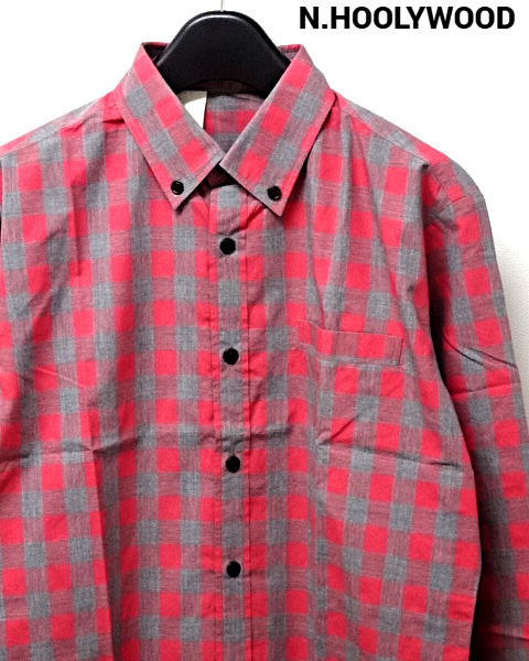 36 ¥21,000【N.HOOLYWOOD B.D CHECK SHIRTS 131-SH02pieces RED/GRAY ミスターハリウッド ボタンダウン チェックシャツ 長袖】
