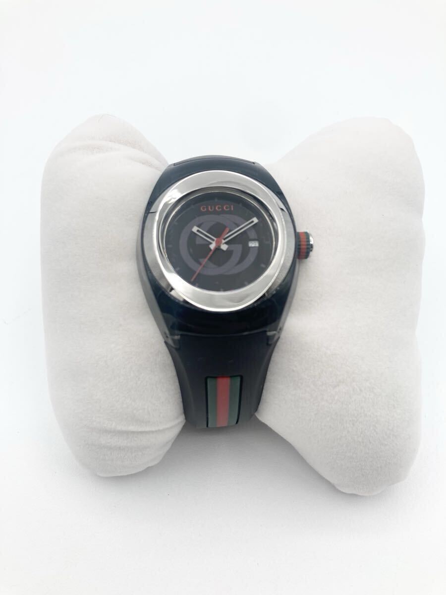 1円スタート GUCCI グッチ ブランド 腕時計 時計 ウォッチ ラバー 箱付き ブラック 1001K①