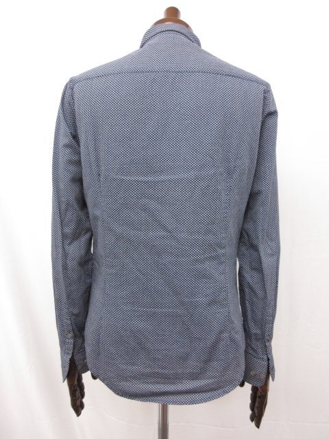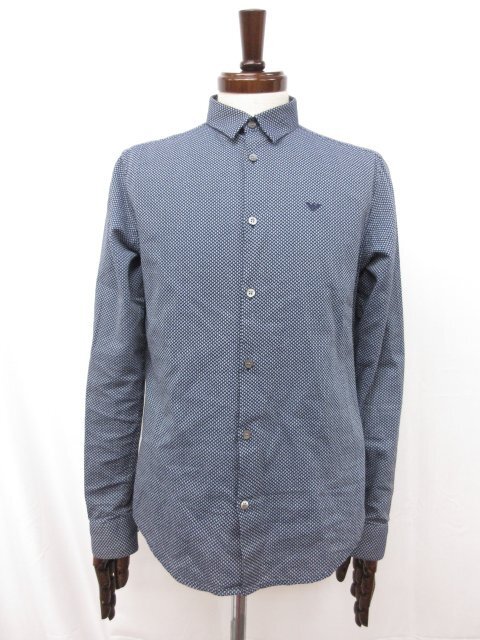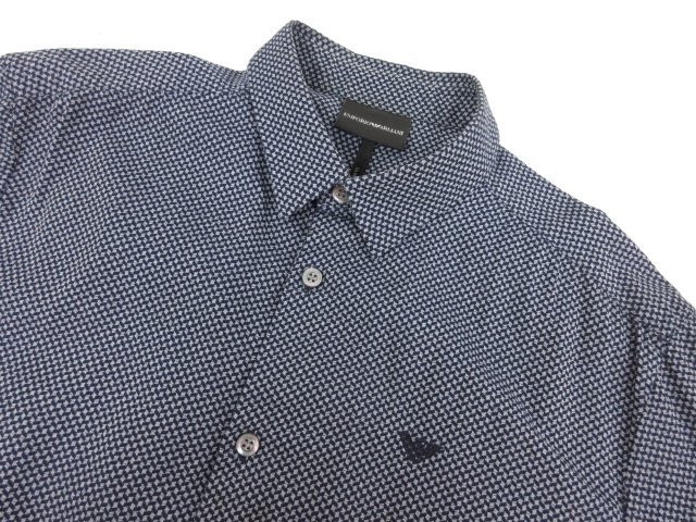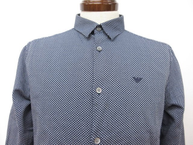 美品【エンポリオアルマーニ EMPORIO ARMANI】 ロゴ刺繍 総柄 長袖シャツ (メンズ) sizeM ネイビー系×グレー系 6G1C09 1N6UZ ◯33MK4600◯