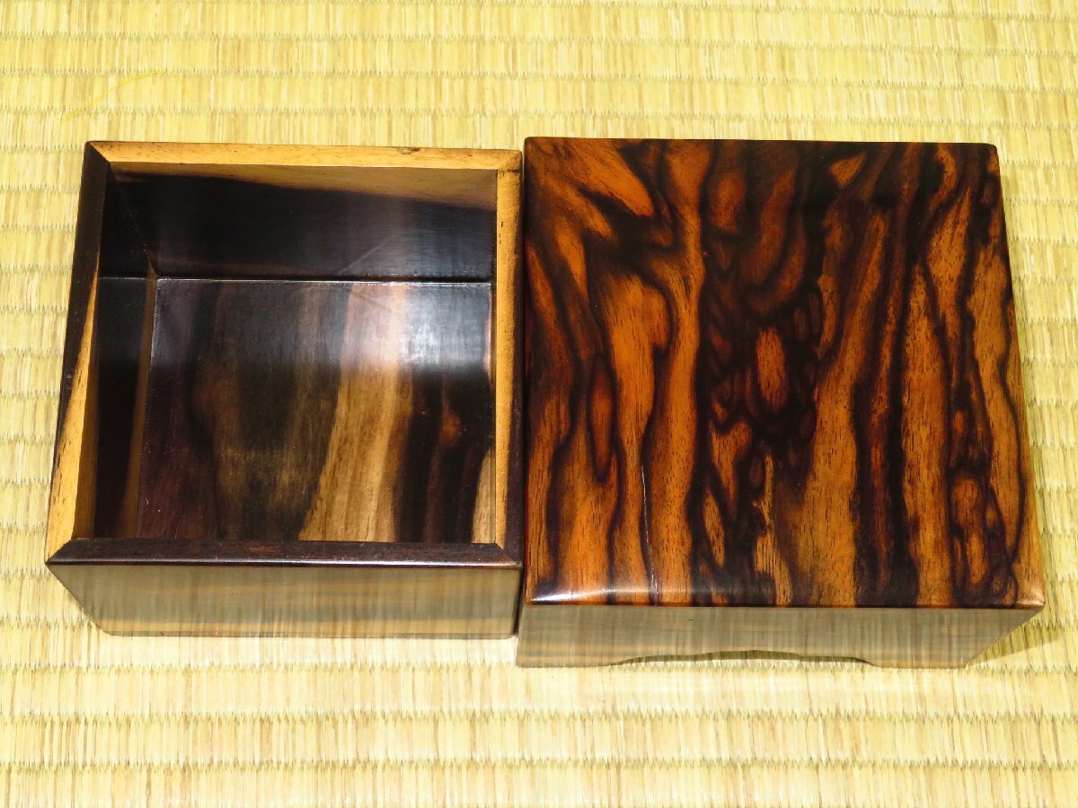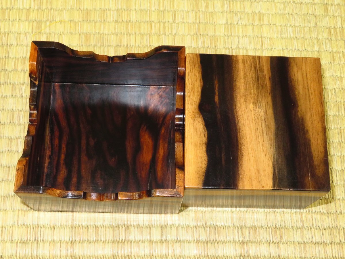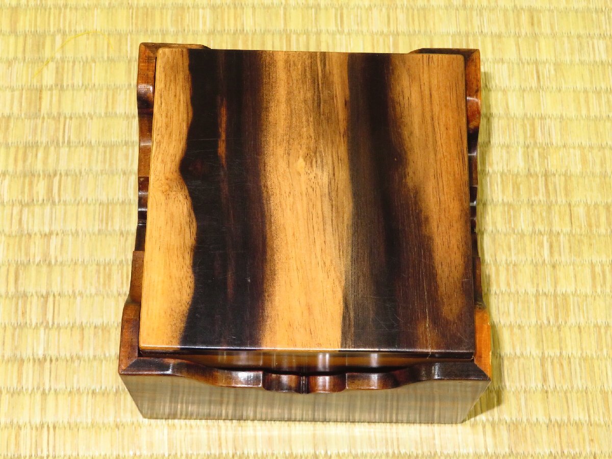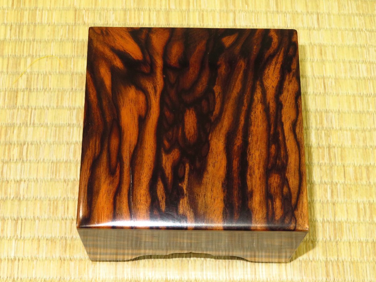 無銘ながら作り慣れた感じの黒柿の駒箱です。おそらくウレタン仕上。