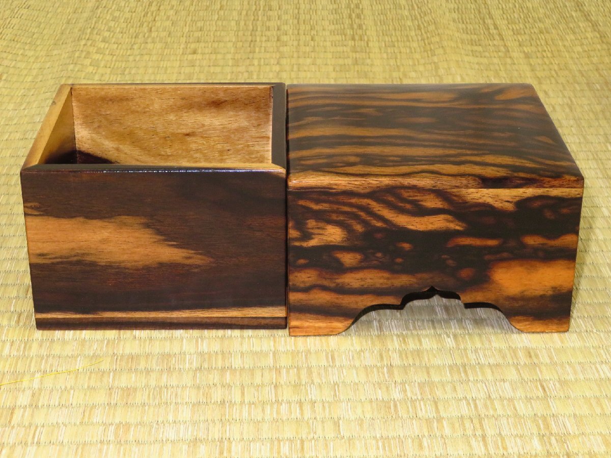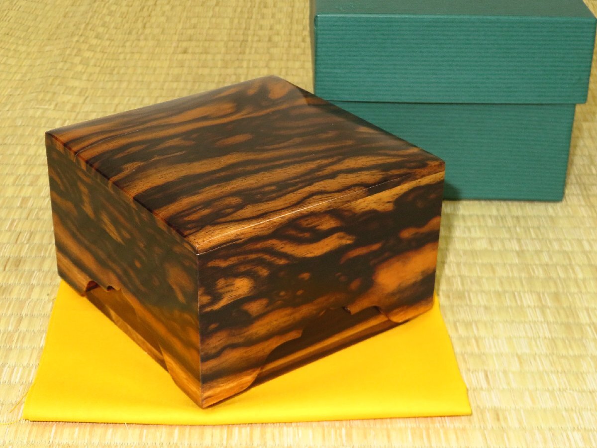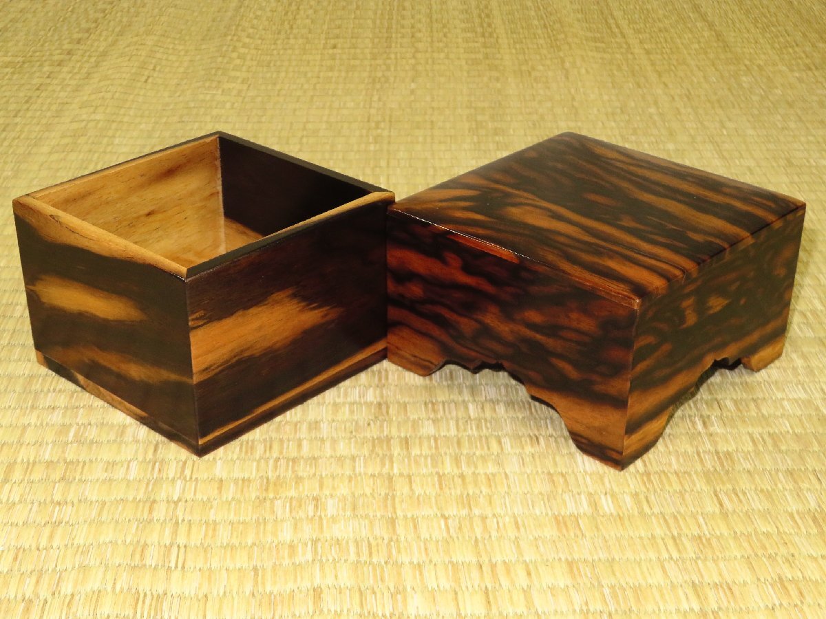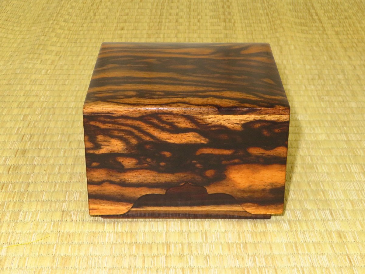 無銘ながら作り慣れた感じの黒柿の駒箱です。おそらくウレタン仕上。